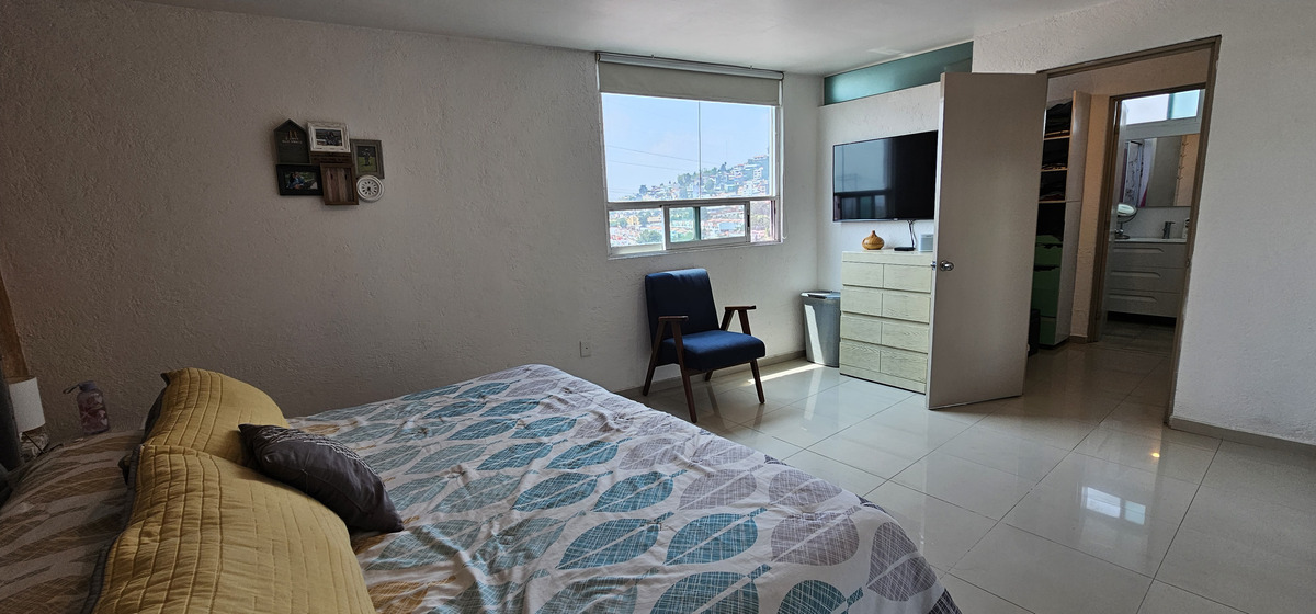 House for sale in Col. Cd. Brisa, Naucalpan. It is characterized by its avant-garde and modern design, as well as its spacious areas and double-height handling on the first floor.