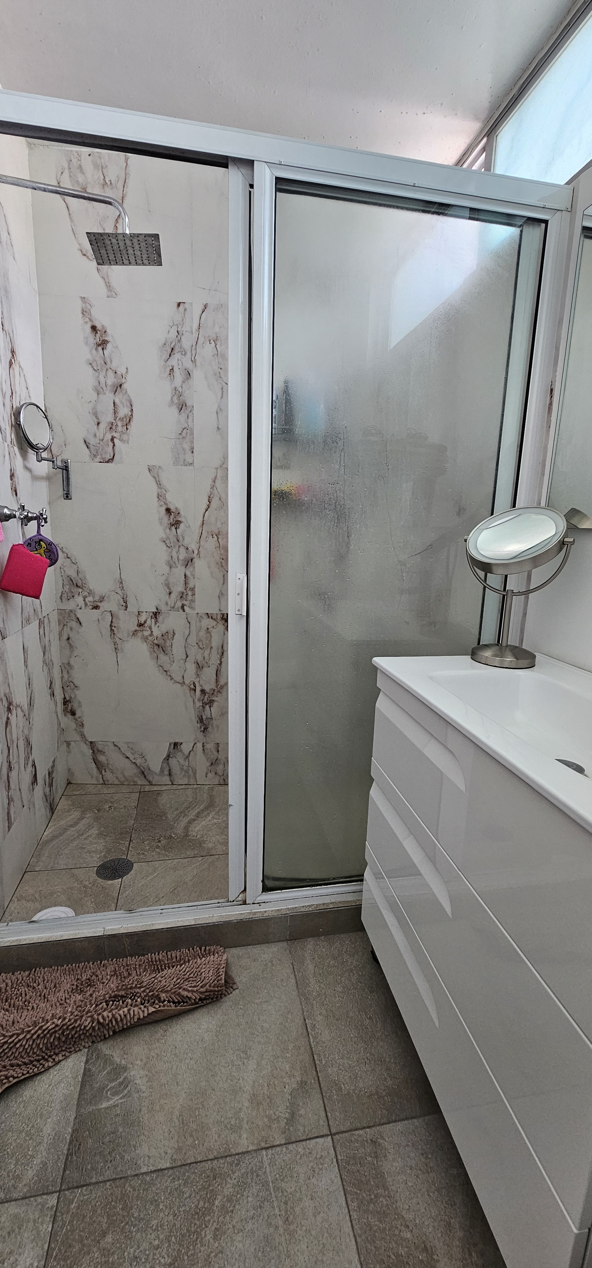 The third level offers a covered and ventilated roof garden, ideal for gatherings, in addition to a full bathroom separate from the service room and a drying area.