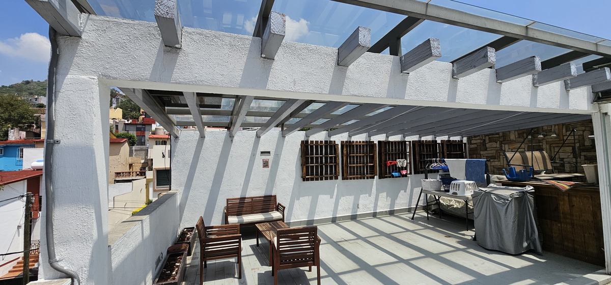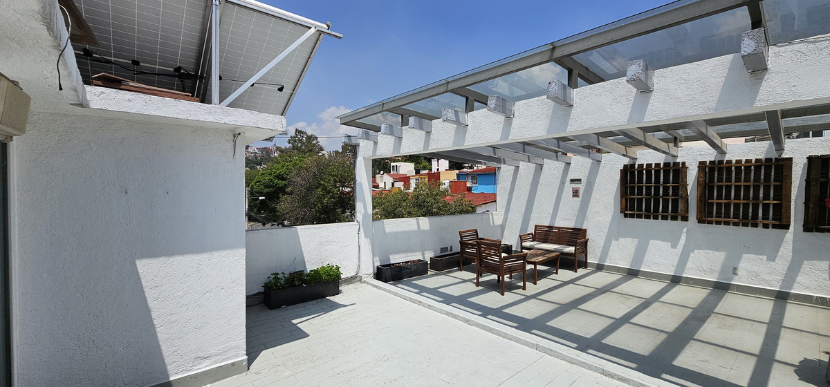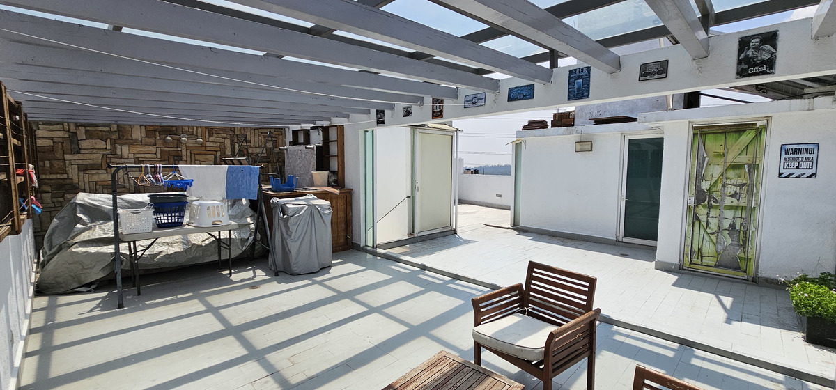 El tercer nivel ofrece un roof garden techado y ventilado, ideal para reuniones, además de un baño completo separado del cuarto de servicio y un área de tendido.