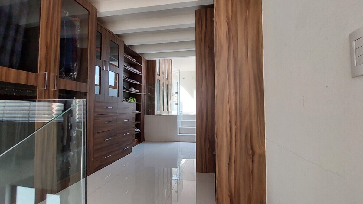 En el nivel superior, tres cómodas recamaras con vestidor y baños completos, la recamara principal con dos baños completos y amplios vestidores en dos niveles.
