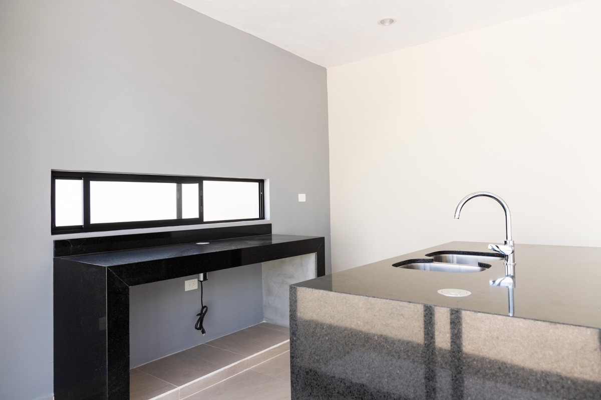 - Cocina con isla de granito san Gabriel con una contrabarra en granito