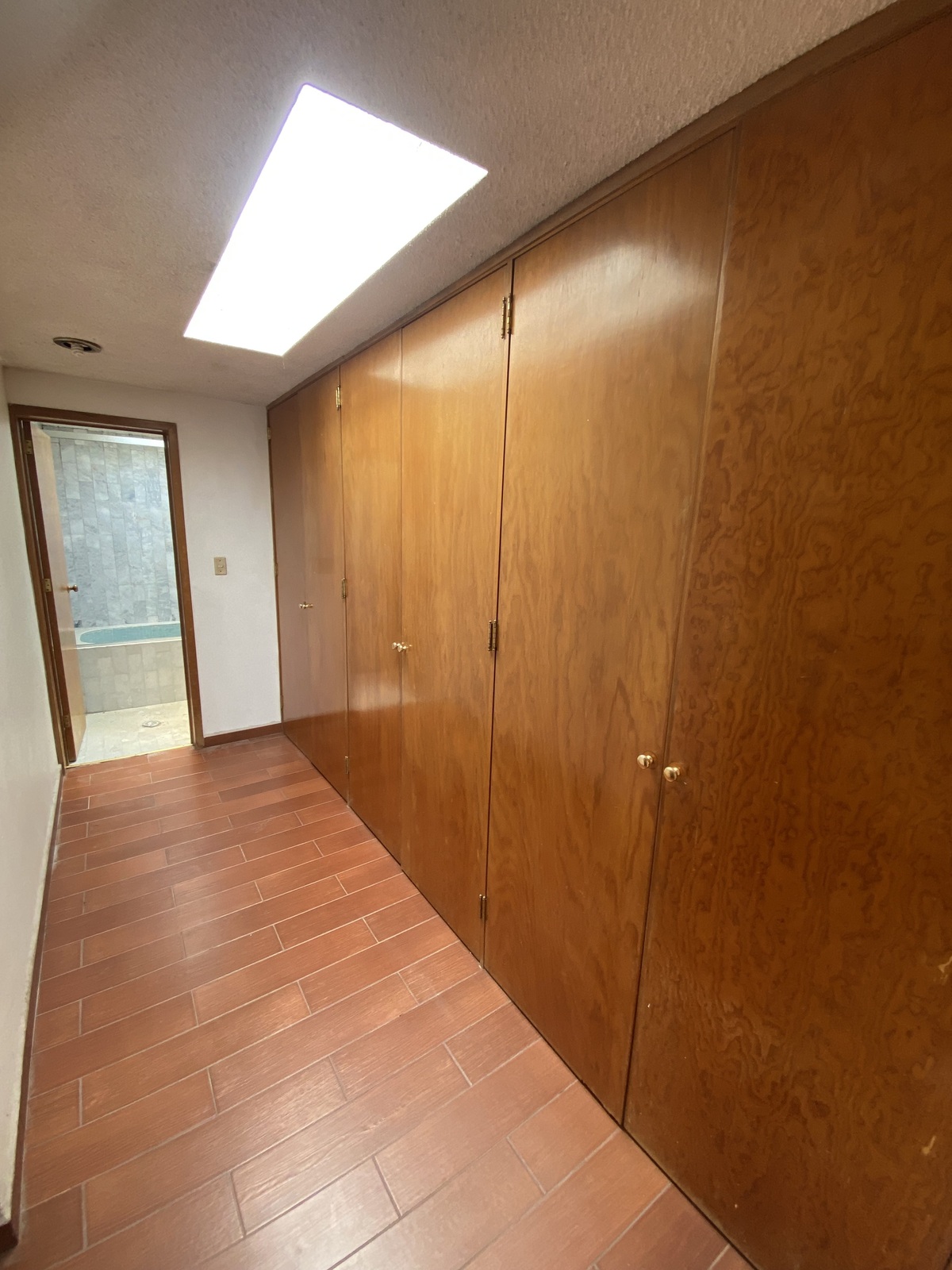 La recámara principal ofrece clóset de pared a pared, baño completo con tina y balcón.