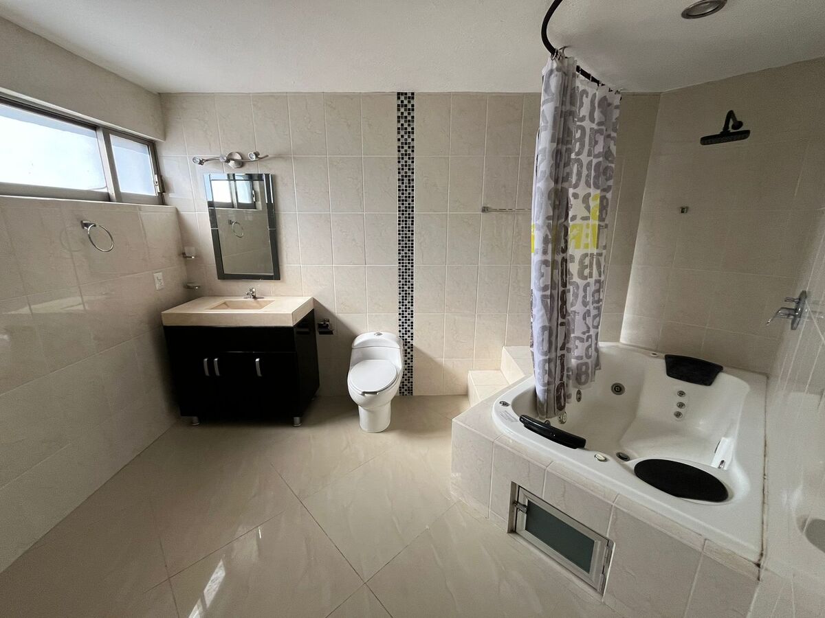 Habitación principal con aire acondicionado, clóset, baño completo con jacuzzi y aire acondicionado adicional