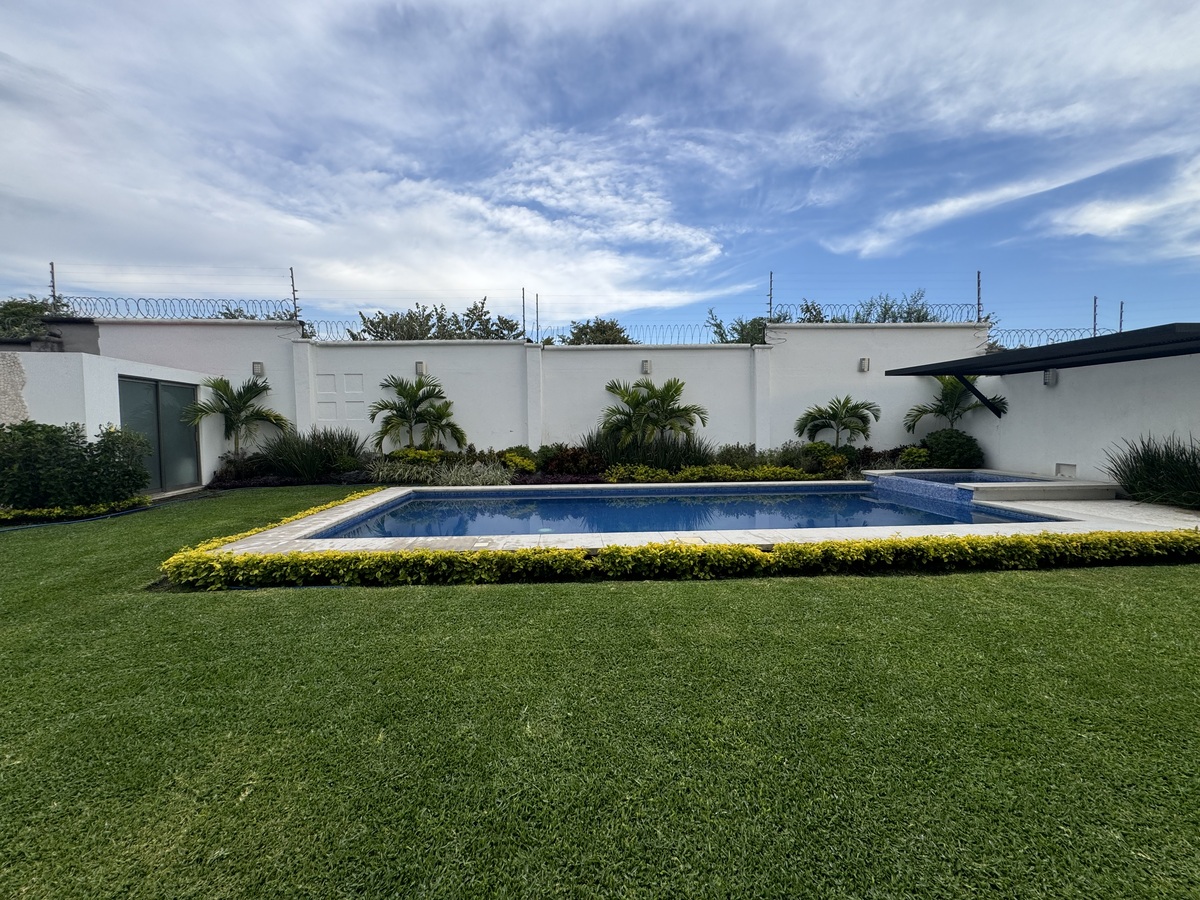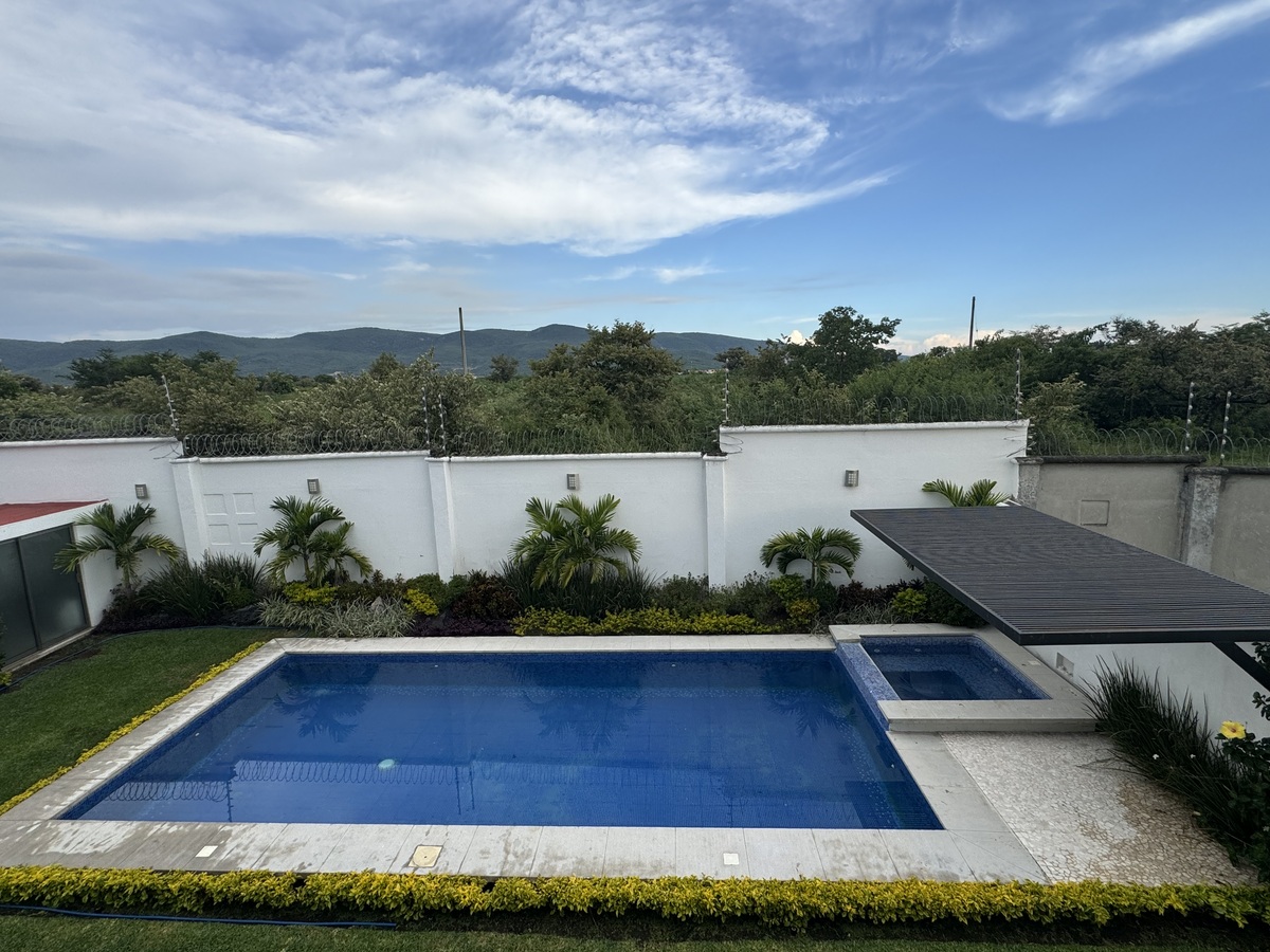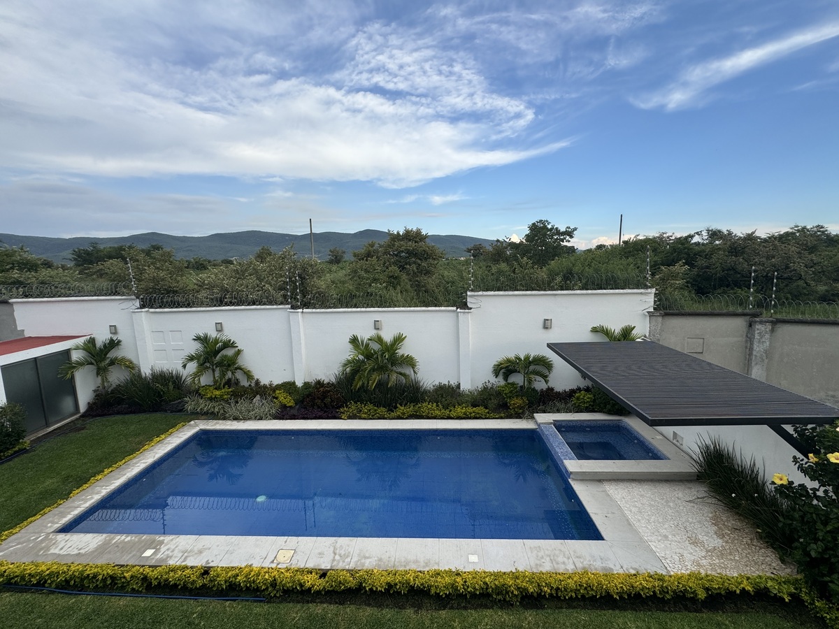 Terraza y hermoso jardín con alberca equipada con Jacuzzi.