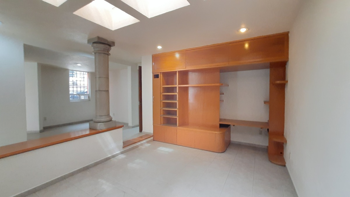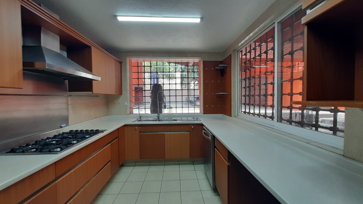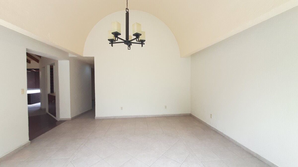 Amplia sala comedor con acceso al jardín. Cuarto de tv, antecomedor, cocina cerrada con despensa. Medio baño.