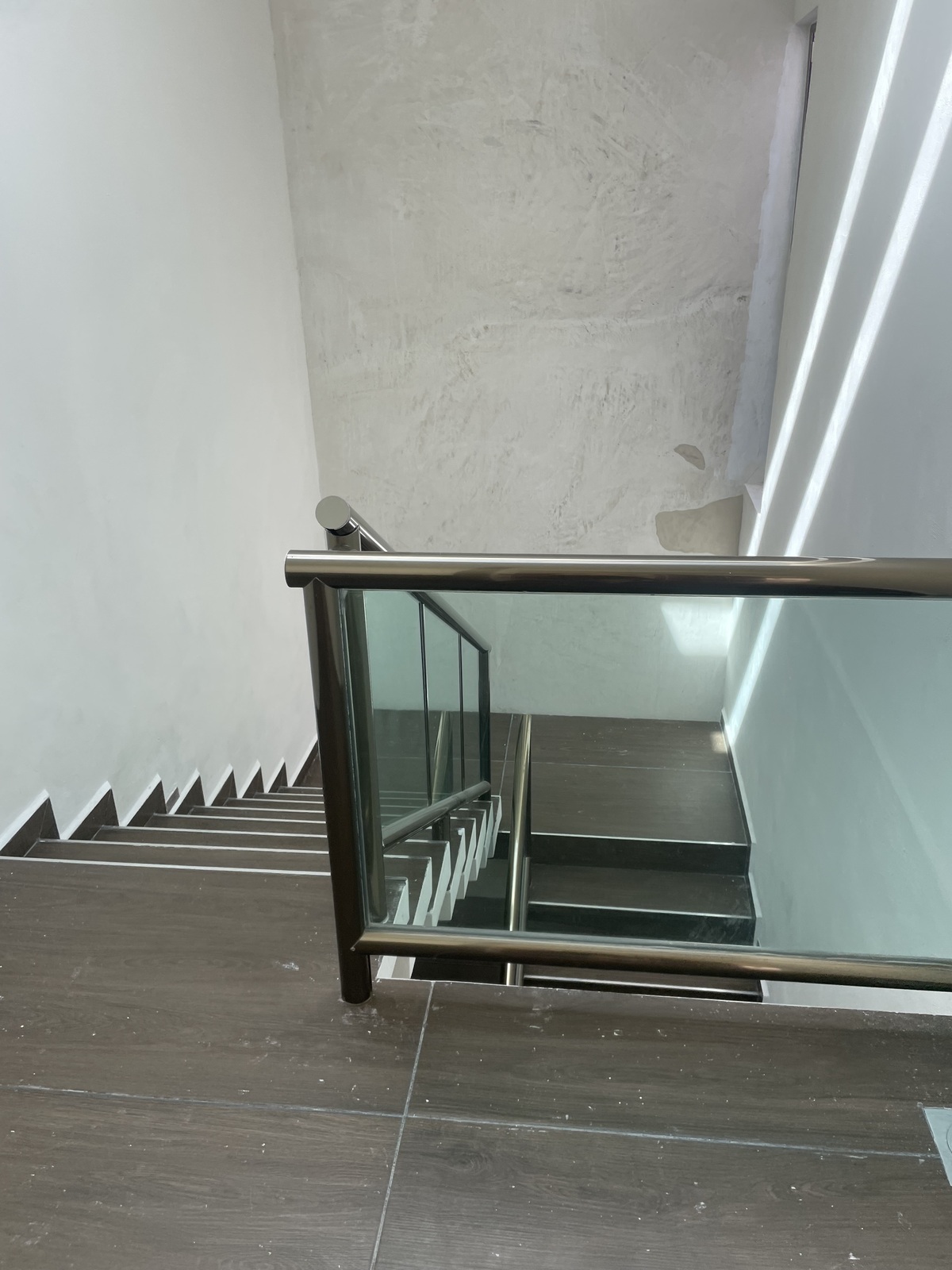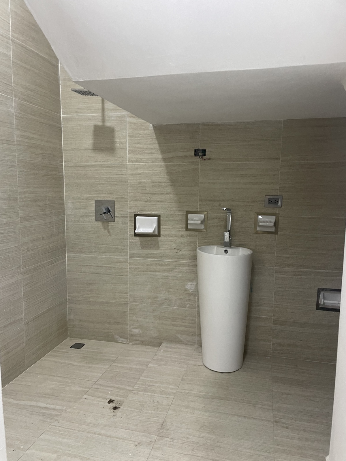 Office, Staircase, Bedroom with closet area and bathroom, service room with bathroom and laundry area.