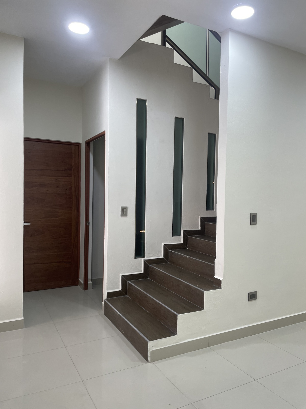 Oficina, Escalera, Recamara con área de closet y baño, cuarto de servicio con baño y área de lavado.