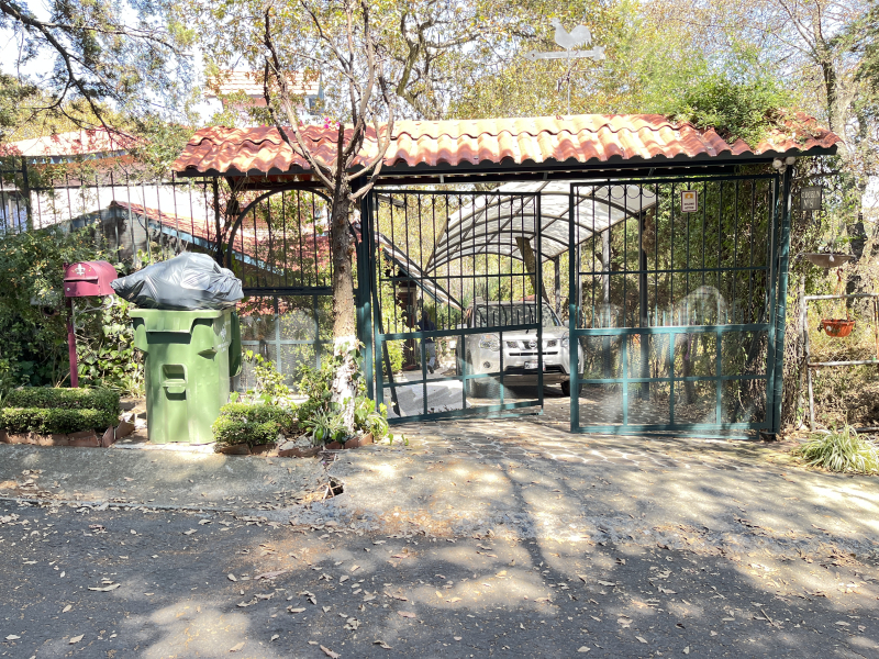Amplio jardín, en medio de zona boscosa, tres estacionamientos, calle cerrada, tranquila, sin ruido, un ambiente natural.