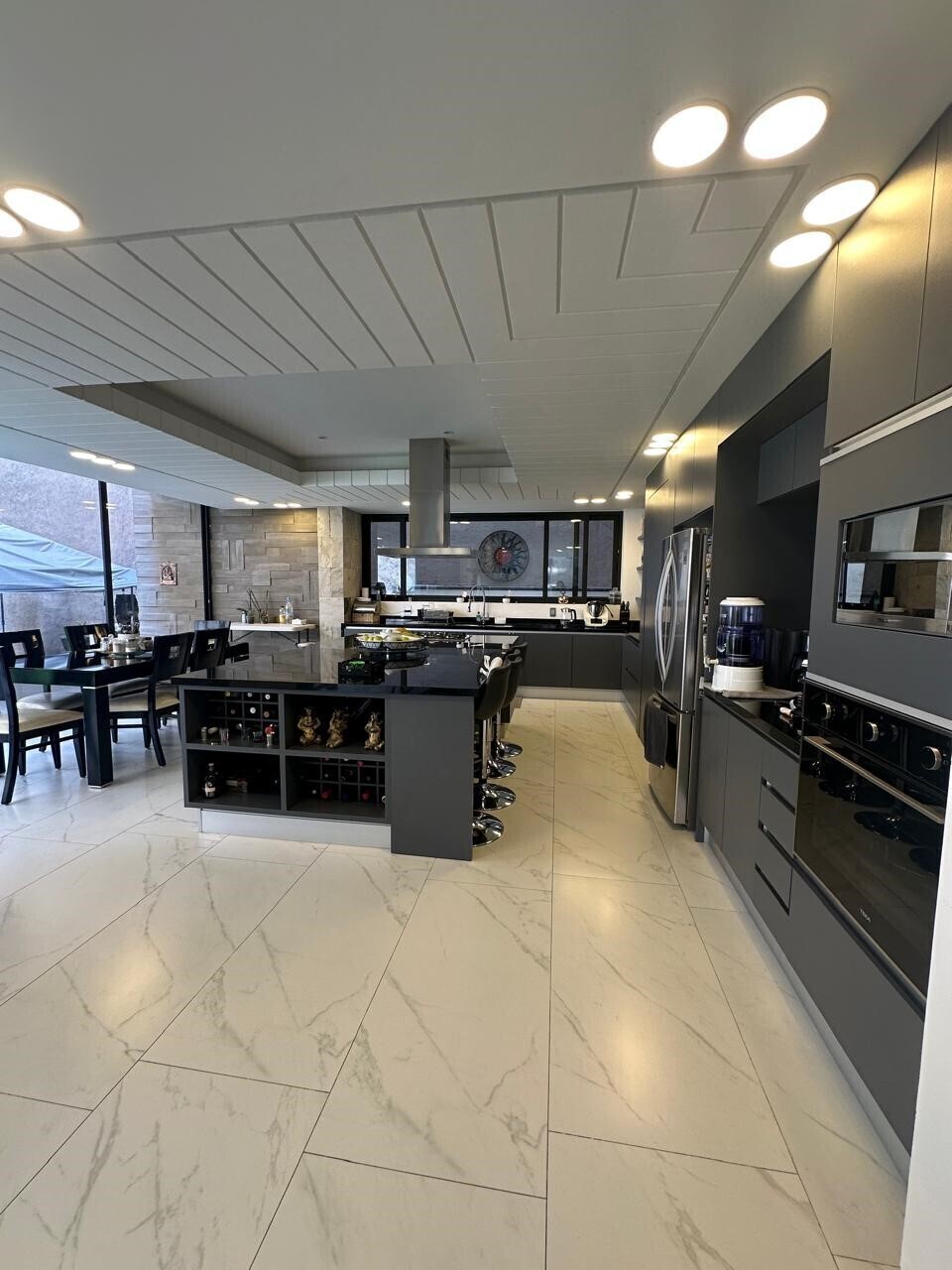 Plafones en Sala a doble altura, cocina y escalera.