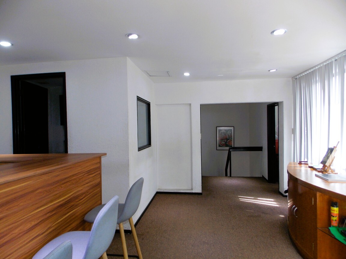 Desarrollada en PB y 2 pisos, actualmente está acondicionada para oficinas. Uso de suelo habitacional H/3/20, cuenta con 13 oficinas muy amplias e iluminadas, estancia, recibidor, 6 medios baños, cocineta, bodega, video portero, CCTV, Cisterna, garage para un auto. Cuenta con techos altos de la época. Hermosa terraza de 28 m2 que te permite disfrutar de momentos inolvidables.