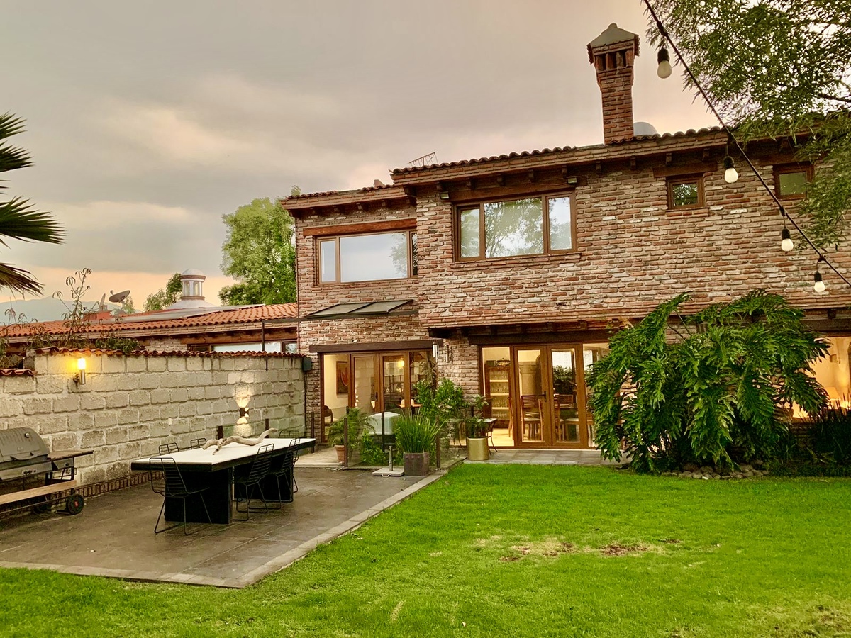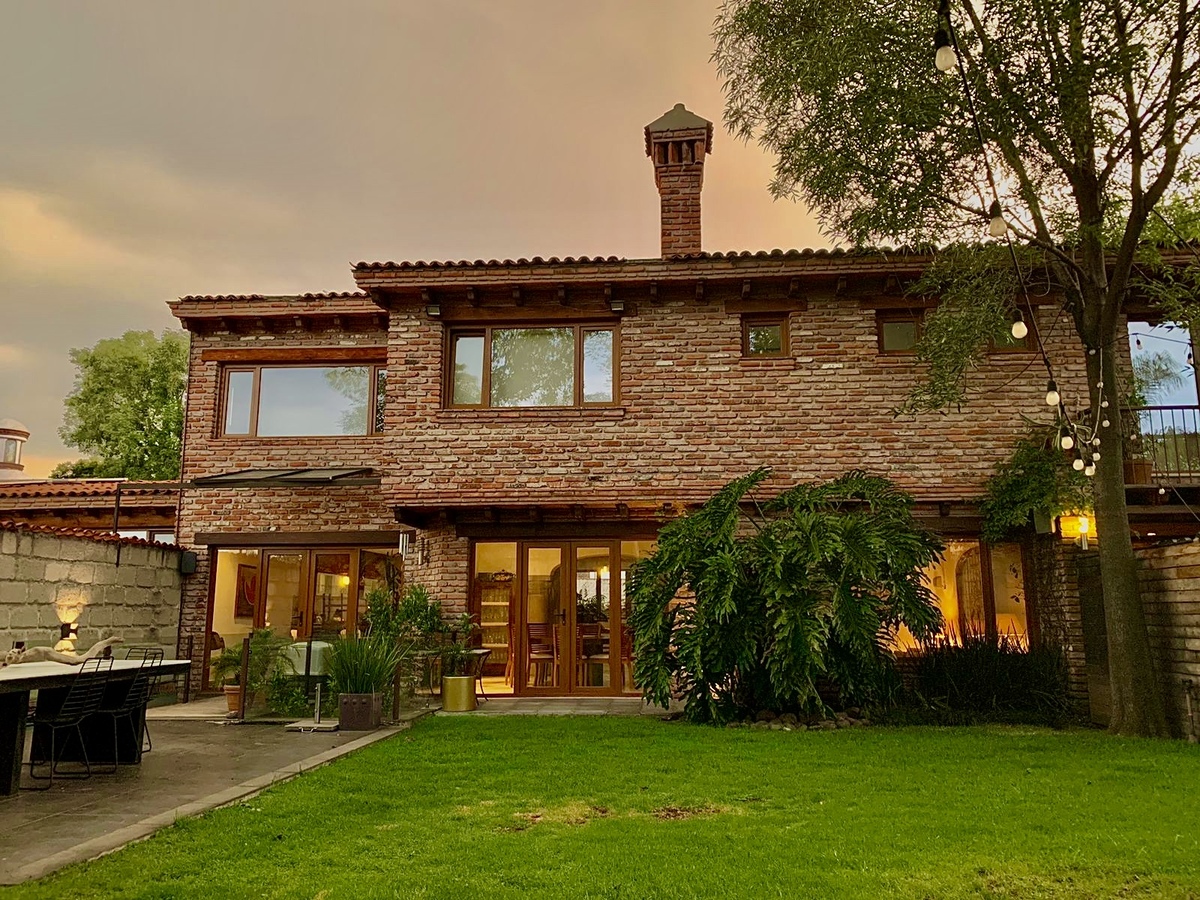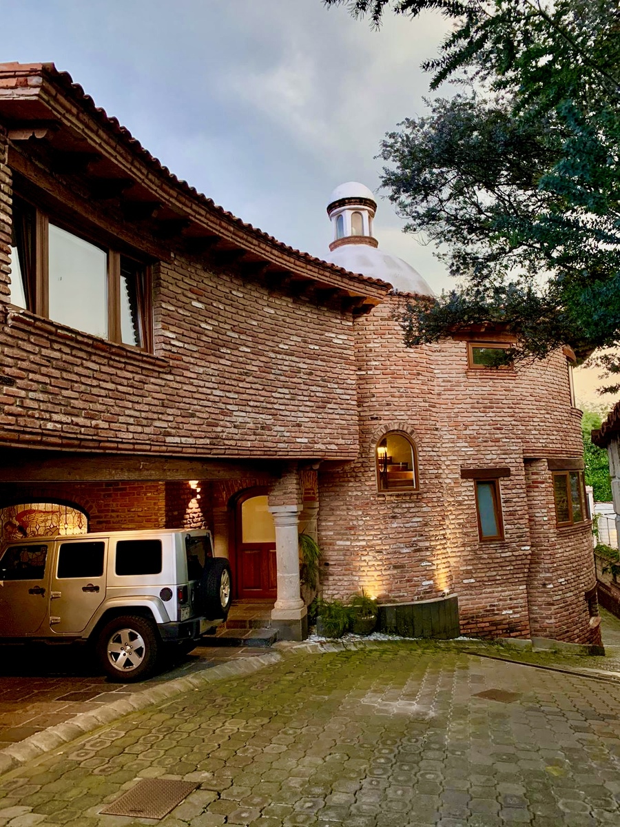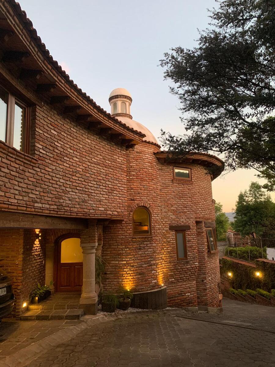 La casa es diseñada y construida por el Arq. Cramer, quien combina tabique, madera, cantera para lograr un ambiente acogedor y cálido en la casa.