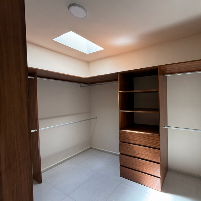 • La segunda recámara en planta alta tiene closet con cajonera, maletero y tubos para ropa.