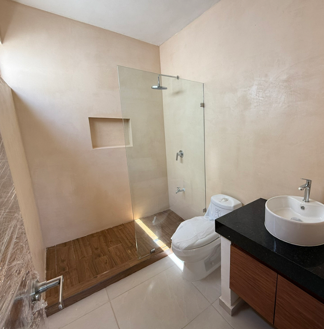 • 3recámaras,laprincipal, en planta alta, con baño completo y amplio vestidor, carpintería completa con2cajoneras, maleteros y tubos para ropa.