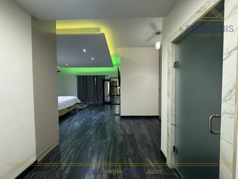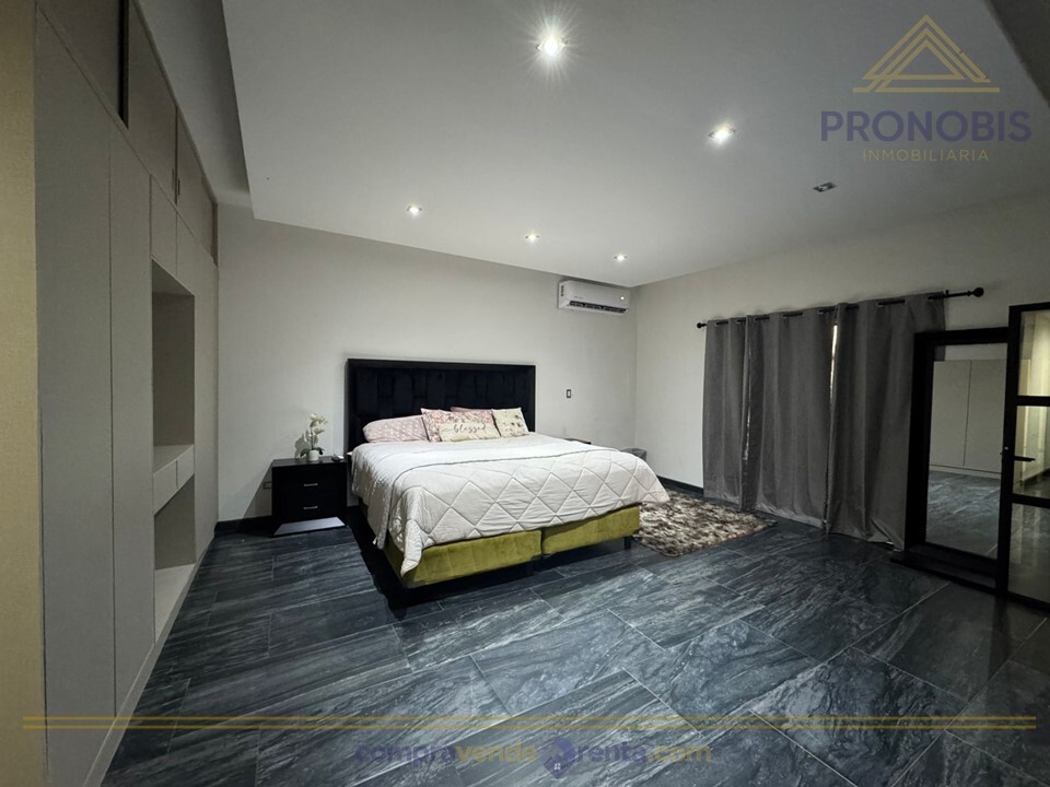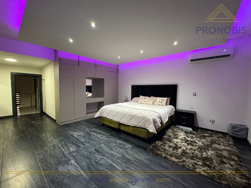 - Recamara principal modificada para hacerla mas amplia con luces led en techo con walking closet y closet de piso a techo, baño completo con vidrio templado en regadera