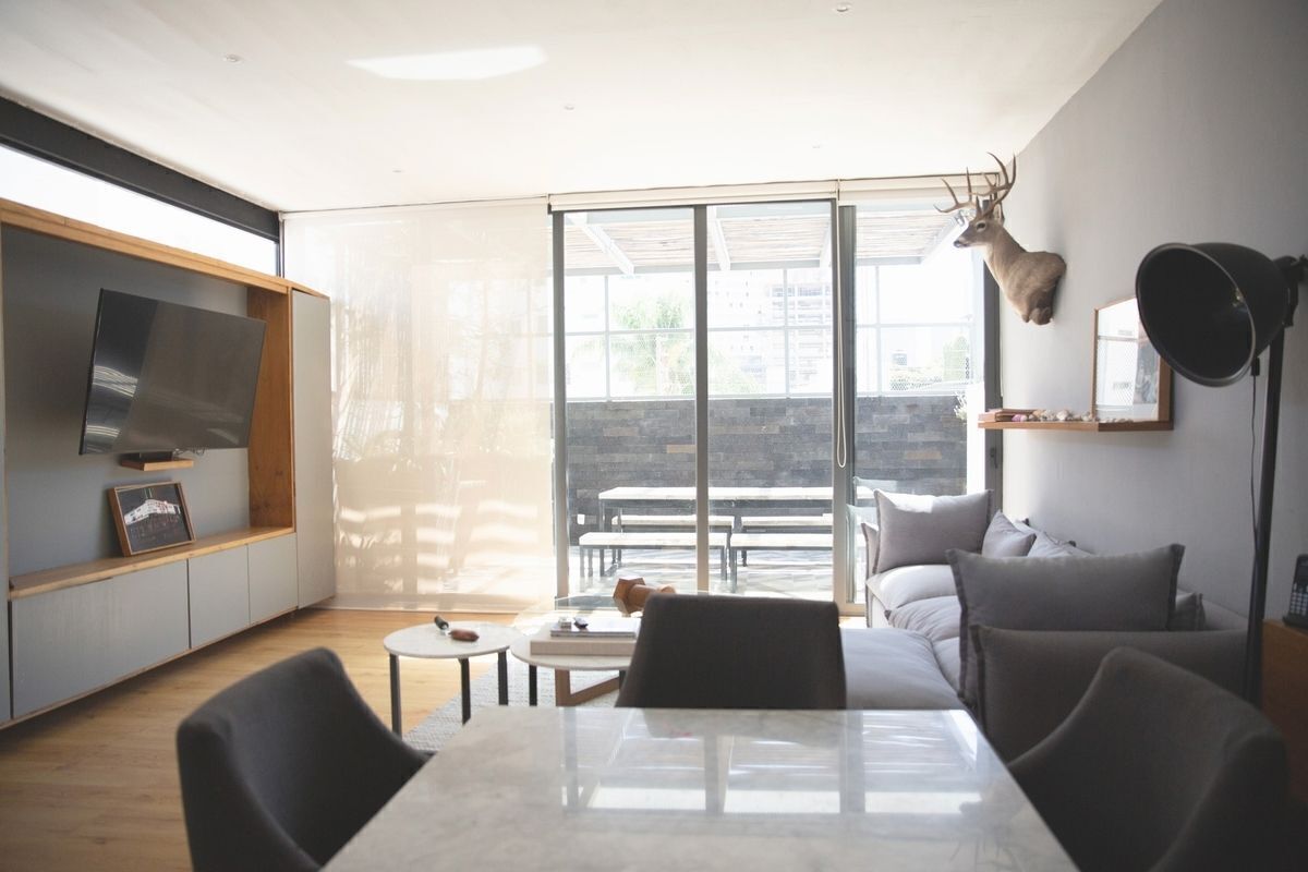 - Sala y comedor con diseño abierto que conecta con una hermosa terraza.