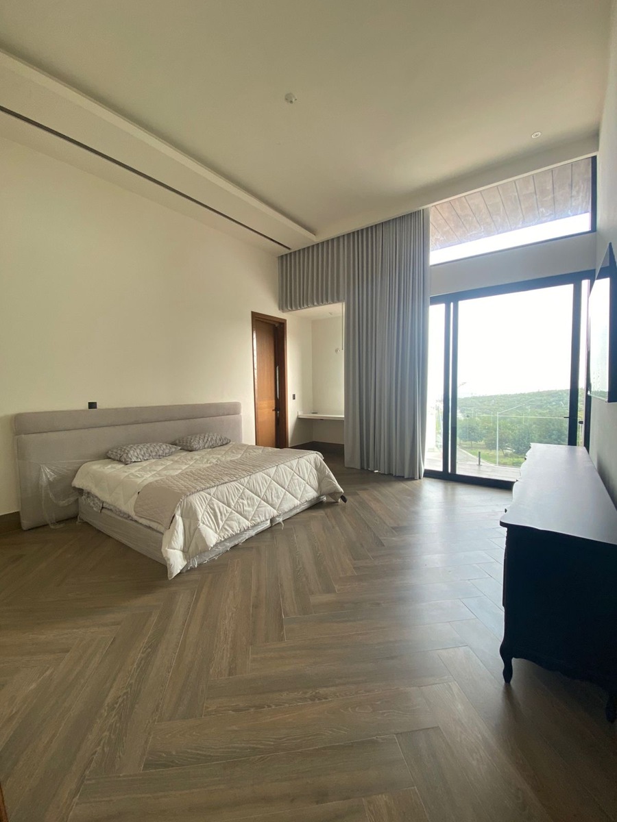 Una de las recámaras secundarias también cuenta con 4 m de altura, Lambrin, cama king size, vanity, cortinas black out, walking closet.
