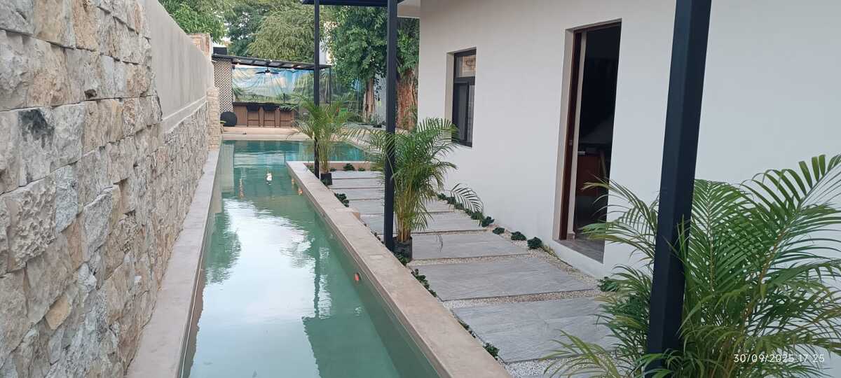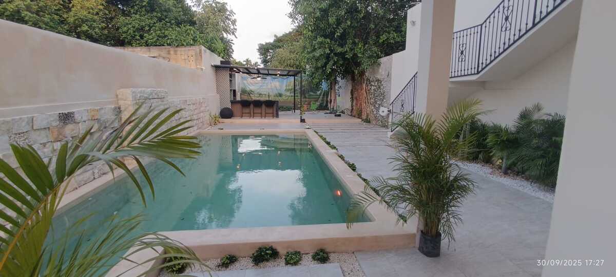 Ideal para Airbnb y/o hotel boutique consta de 4 habitaciones independientes con baño c/u y closets de madera de cedro ( 3 planta baja y 1 planta alta), Sala, Comedor, Cocina, Área de lavado Despensa, Cuarto de máquinas, Baño completo en área de alberca, Alberca y cascada : acabados Chukum Medidas del canal de nado 1.40m de ancho y 12m lineales de largo Medidas de piscina 4m de ancho y 8m de largo Acabados en Chukum toda la casa interior y exterior.