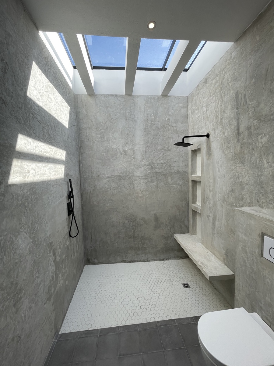 3 bedrooms with full bathrooms (the main one with double sink and a shower with glass ceiling and double showerhead)