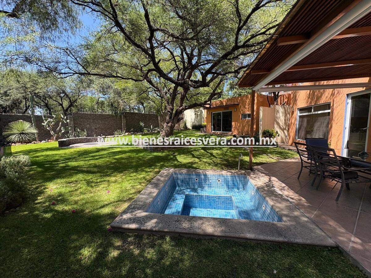 El amplio jardín con árboles maduros ofrece un espacio inigualable para disfrutar de reuniones familiares, descanso al aire libre o simplemente conectar con la naturaleza. La terraza techada y el jacuzzi complementan este ambiente de relajación total.