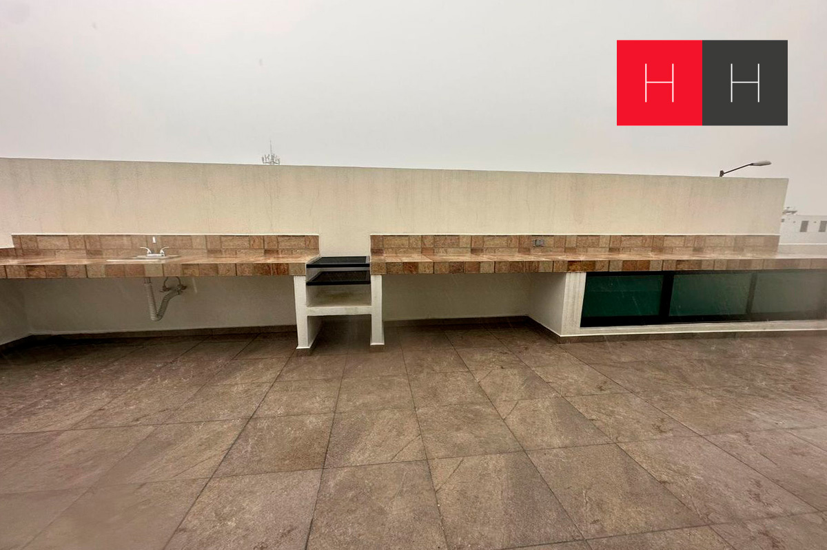 Second level with Roof Garden featuring a barbecue area, half bath, and Family Room.Casa en Venta dentro de fraccionamiento el Sendero del Fresno con sala comedor amplia e iluminada con vista al jardín cocina abierta con barra y alacena así como medio baño de visita.