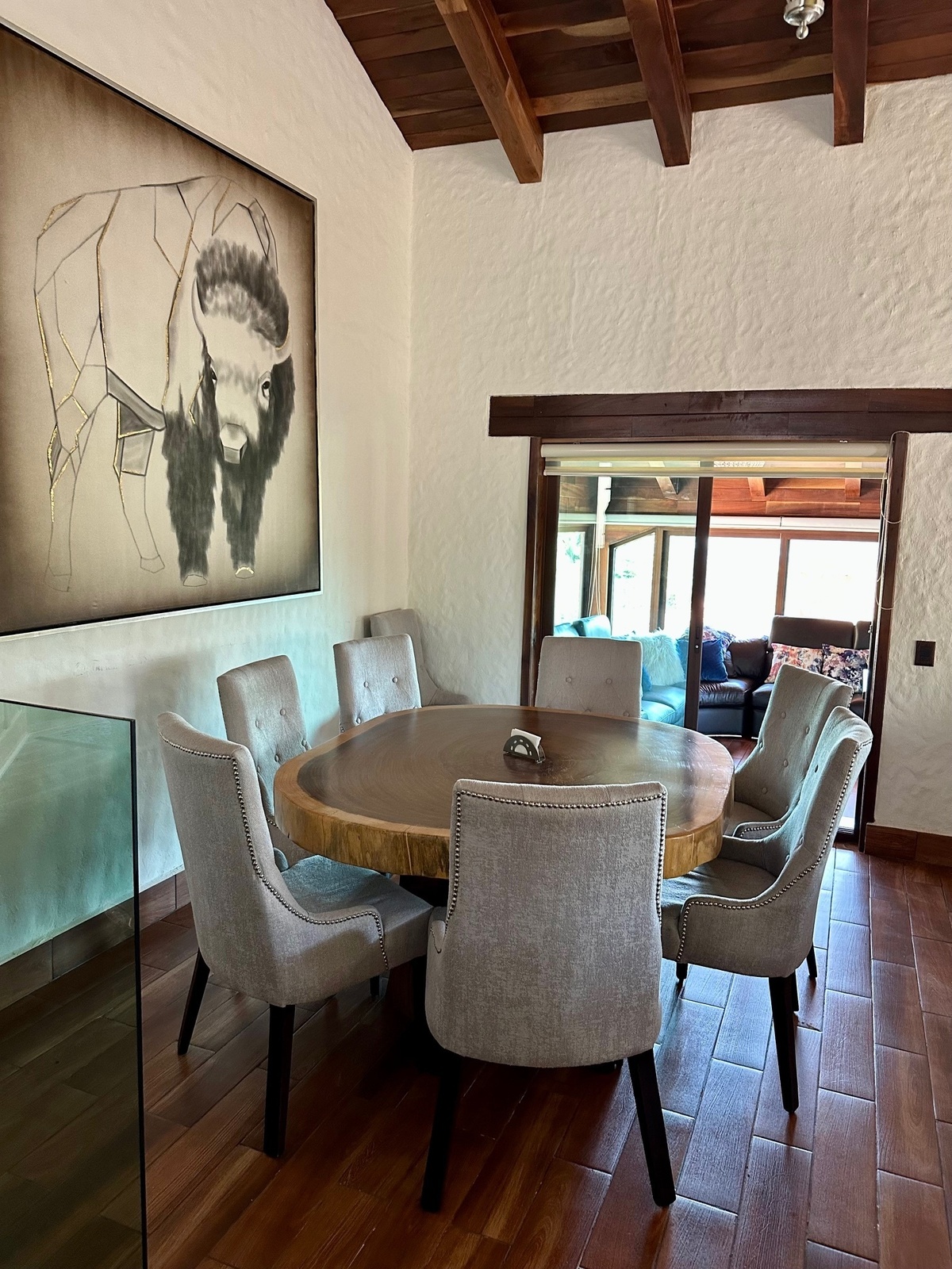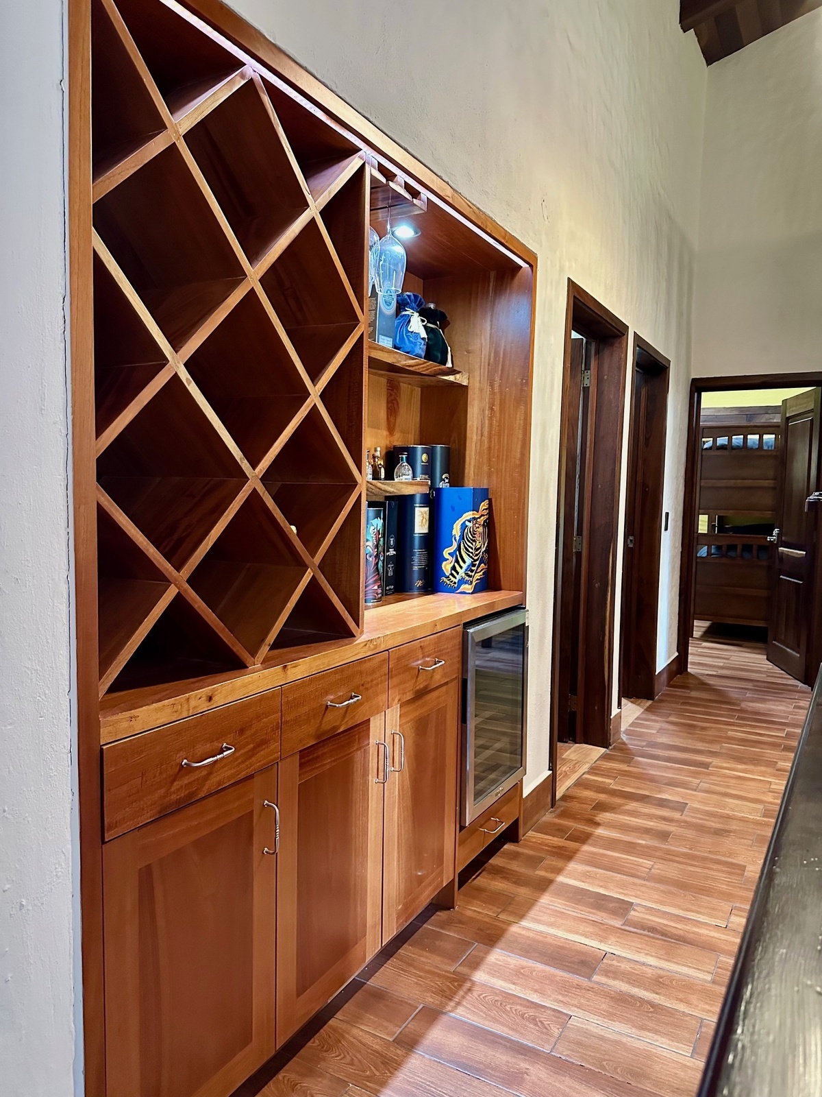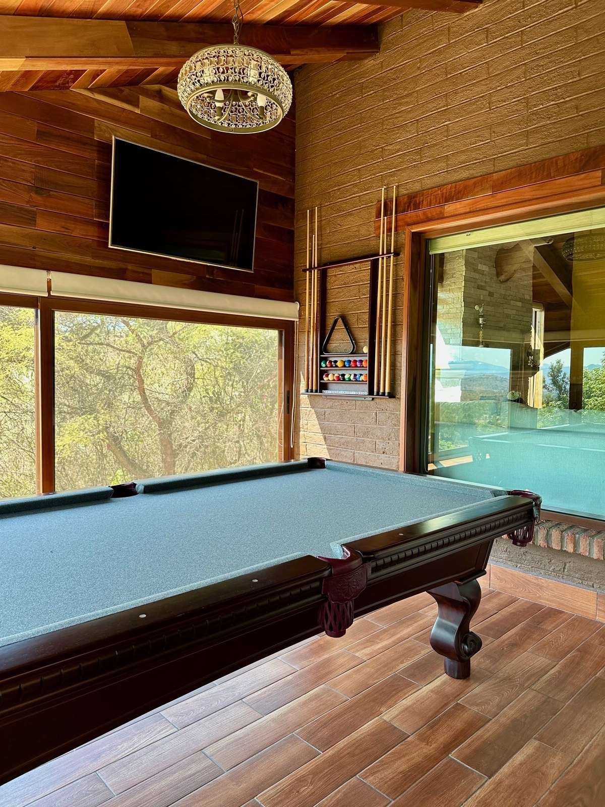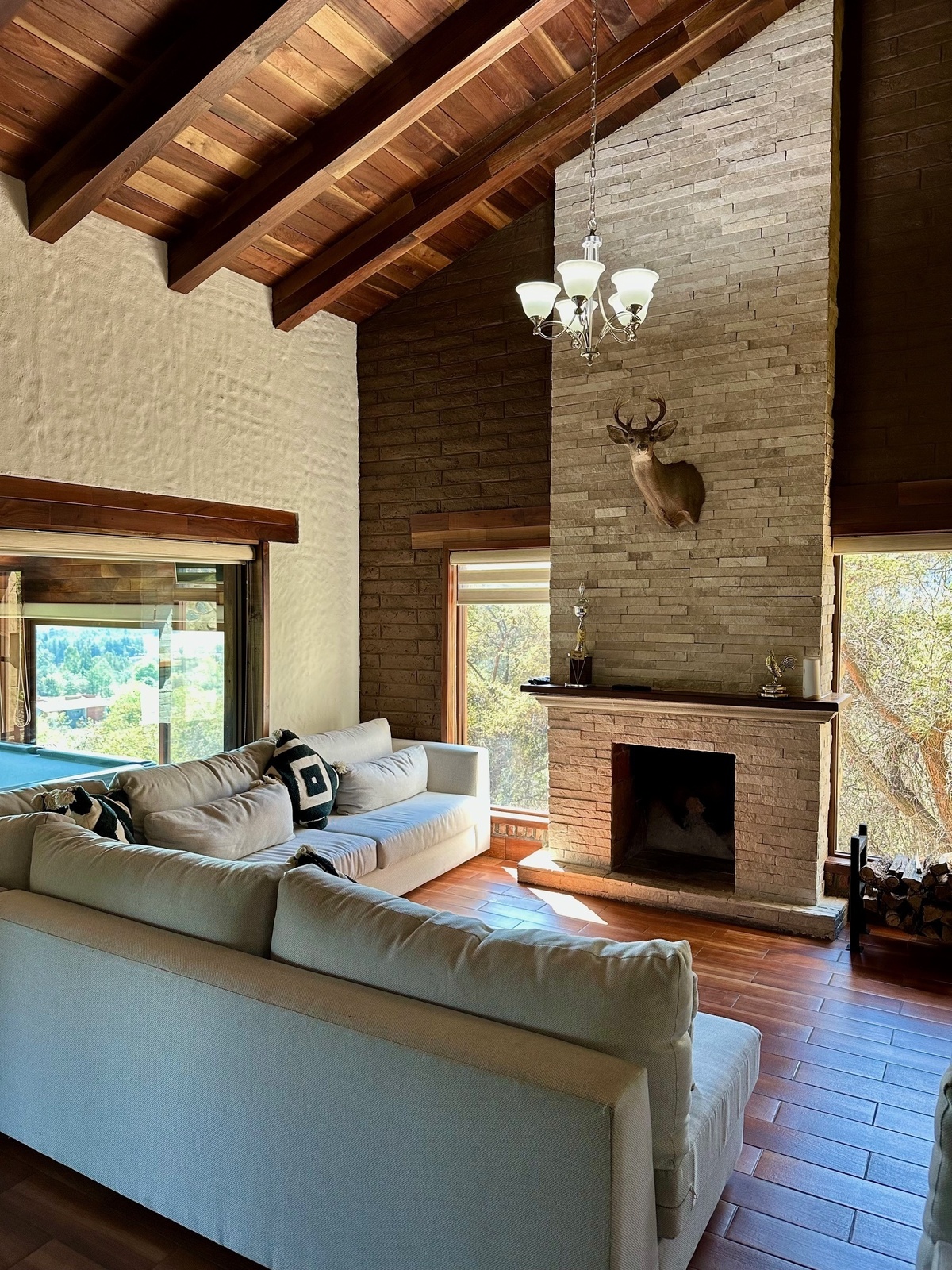 Disfruta de paredes de piedra y madera que aportan un toque de sofisticación, junto con una iluminación moderna que realza cada espacio –