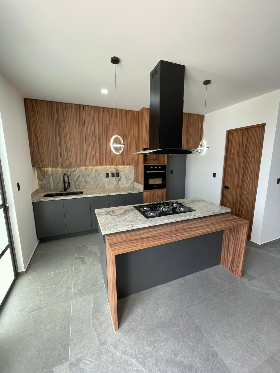 The house will have security cameras, a smart lock at the main entrance, a solar water heater, a cistern of 6,000 liters, a rotoplas tank of 1100 liters, a stationary LP gas tank, an oven, a grill, a hood, granite countertops from San Gabriel, porcelain oval sinks with a black marble finish, wooden finish floors in the bedrooms, and a marine ladder for access to the rooftop.