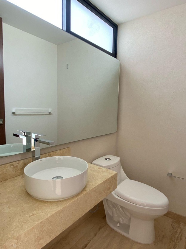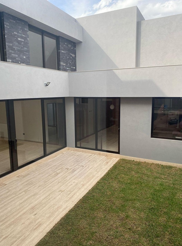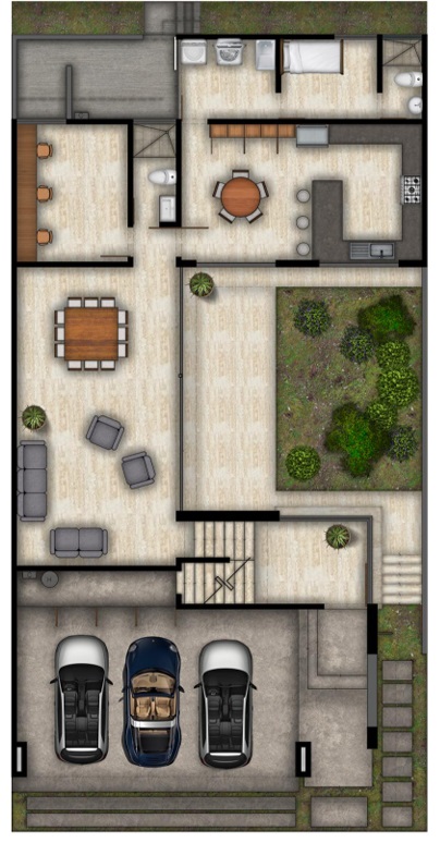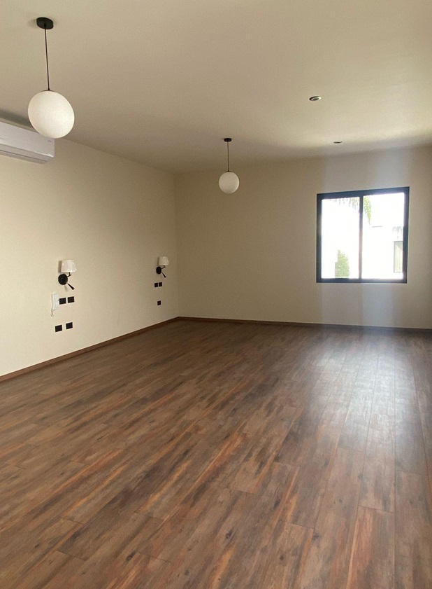 VESTIBULO, SALA, COMEDOR, COCINA INTEGRAL CON CUBIERTA DE GRANITO, ESTUDIO, BAÑO COMPLETO, BODEGA EN COCHERA, COCHERA PARA 3 AUTOS, TERRAZA, JARDIN, AREA DE LAVADO Y TENDIDO, CUARTO DE SERVICIO.