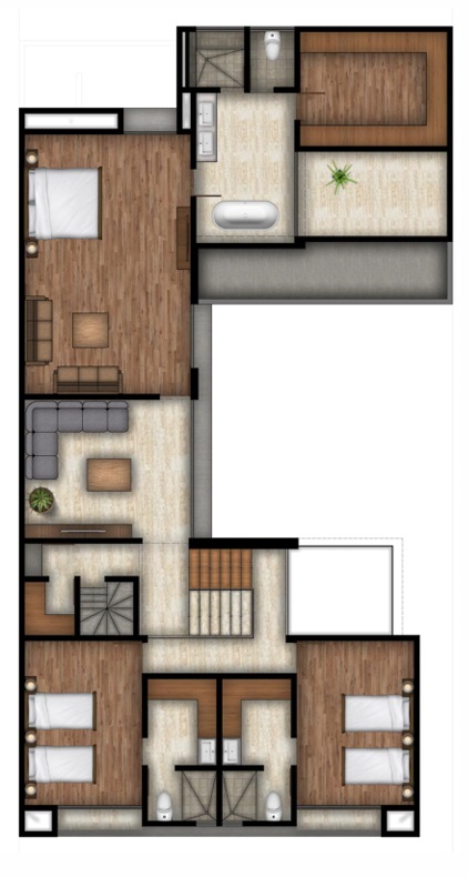 TV HALL, 3 BEDROOMS, THE MASTER BEDROOM WITH DRESSING ROOM, BATHROOM WITH 2 SINKS, AND JACUZZI, THE OTHER 2 BEDROOMS WITH CLOSET AND BATHROOM, LINEN CLOSET, SINK.