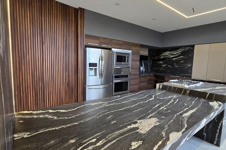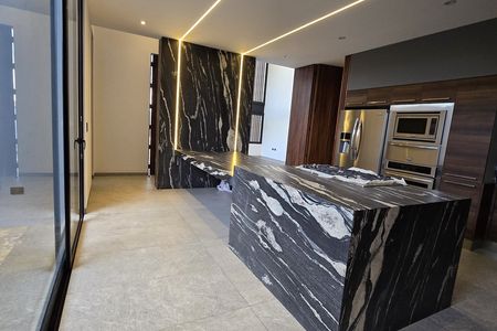Equipment: Tempered glass in railings, in bathrooms, blinds, cisterns (drinking water and gray water), stationary gas tank, solar heater, hydropneumatic system, $1,400 maintenance (Includes certain m3 of water)Planta baja: Cochera 2 autos, recibidor a doble altura, sala a doble altura, comedor, cocina integral con isla y barra de granito, lavavajillas, oficina, medio baño, 1 recamara con vestidor y baño completo con vista al jardín, terraza con asador y amplio jardín, 1 cava subterránea, cuarto de lavandería.