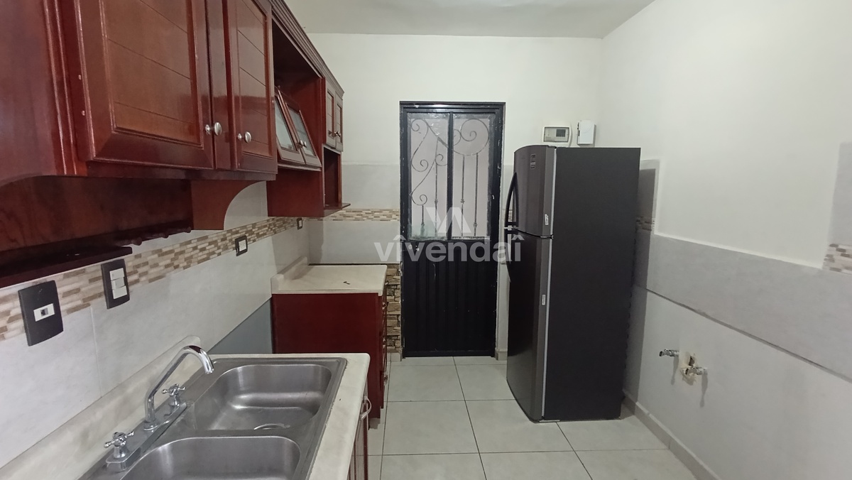 Cuenta con cochera cerrada para 2 autos, sala comedor, un espacio en planta baja para uso de oficina, habitación, sala de TV u otro, cocineta integral, medio baño y lavandería.