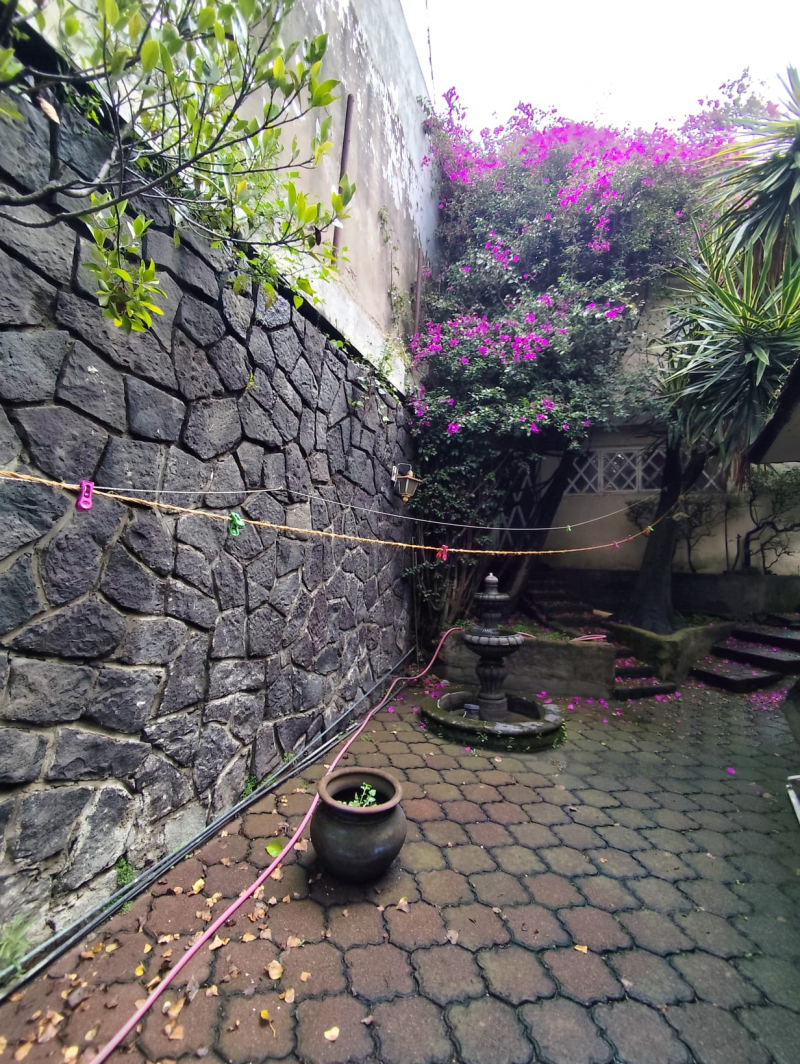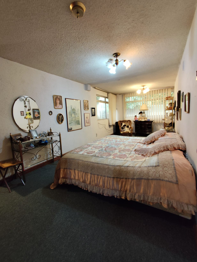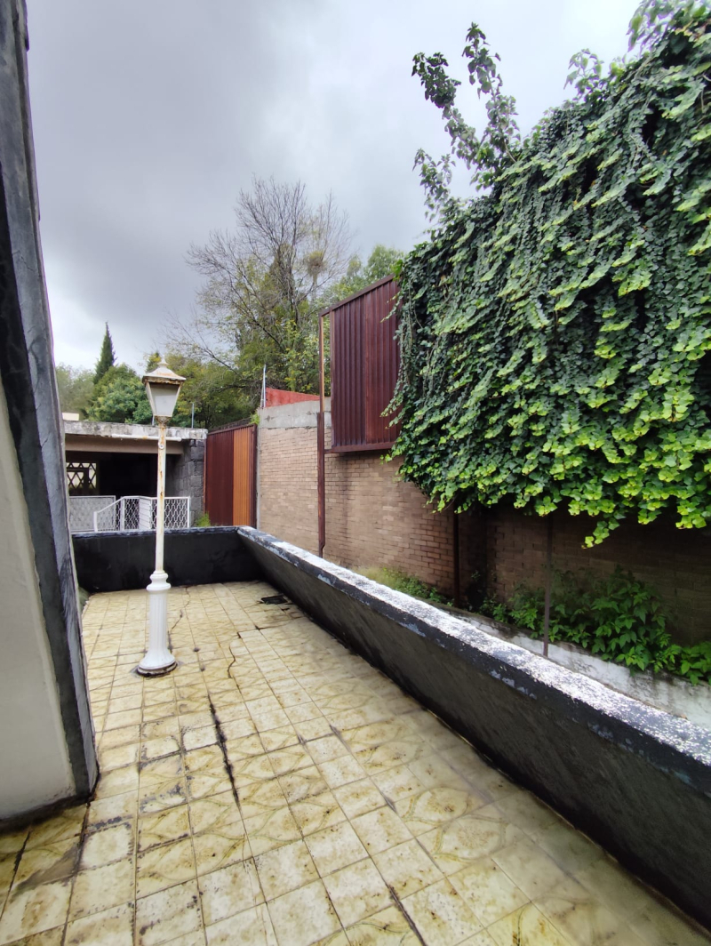 House for sale on a street with security, the house is to be completely remodeled. Excellent location, 5 minutes from Hospital Ángeles del Pedregal. The house has very good spaces, it has a living-dining room, kitchen, service and laundry room, three bedrooms, 4 bathrooms, two terraces, and a study, loft. Four parking spaces, two cisterns. 24/7 security.Casa en venta en calle con vigilancia , la casa es para remodelar completamente. Excelente ubicación , a 5 mins del Hospital Ángeles del Pedregal . La casa tiene muy buenos espacios , cuenta con sala comedor , cocina , cuarto de servicio y de lavado , tres recámaras , 4 baños , dos terrazas y un estudio , tapanco . Cuatro lugares de estacionamiento, dos cisternas . Vigilancia 24/7.