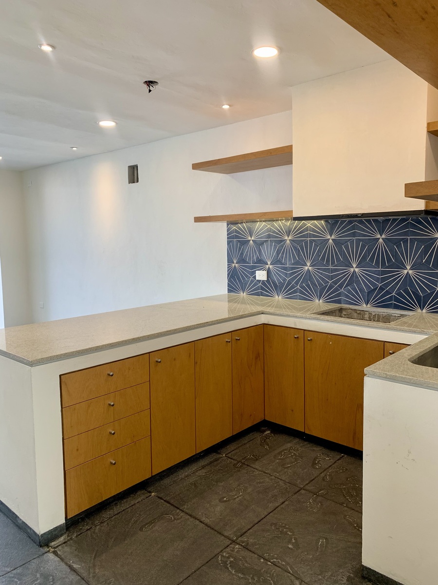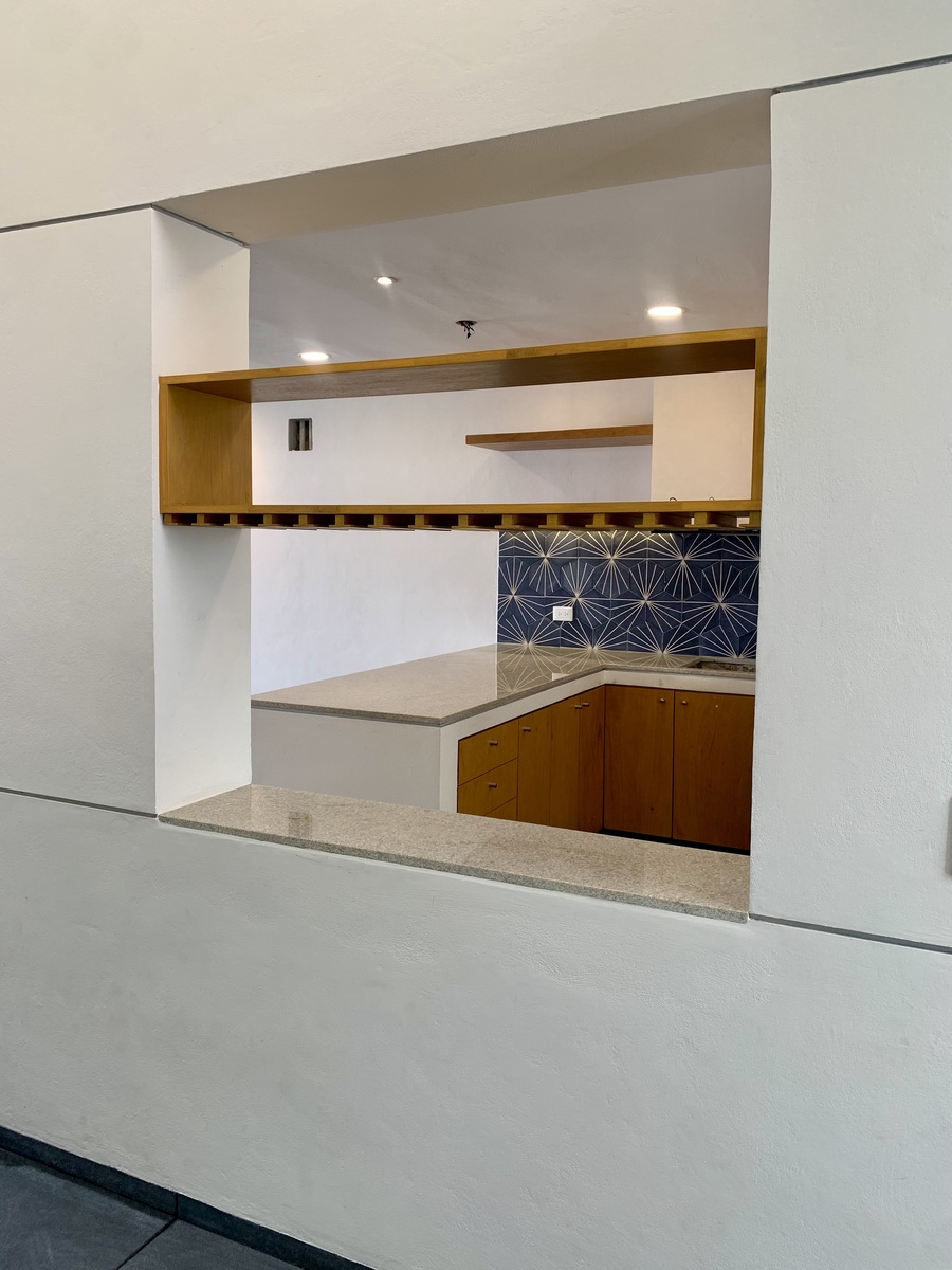 - Cocina equipada con barra de granito, gavetas, repisas, parrilla y campana
