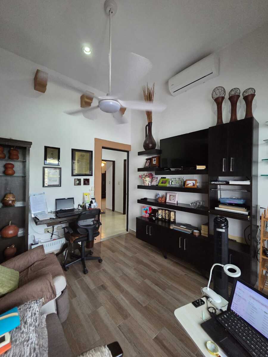 En planta baja encontrarás una acogedora sala y comedor, una recámara, baño completo, y un jardín con terraza techada y alberca, perfecto para disfrutar con la familia y amigos. El pasillo de servicio fue adaptado como bodega y área de lavado muy amplia, brindando gran practicidad.