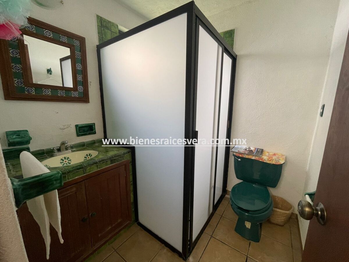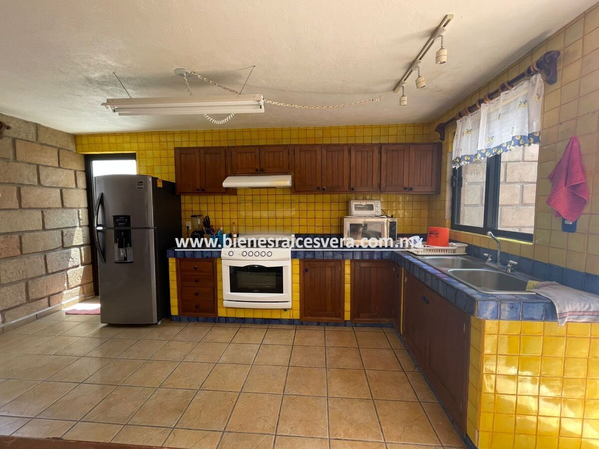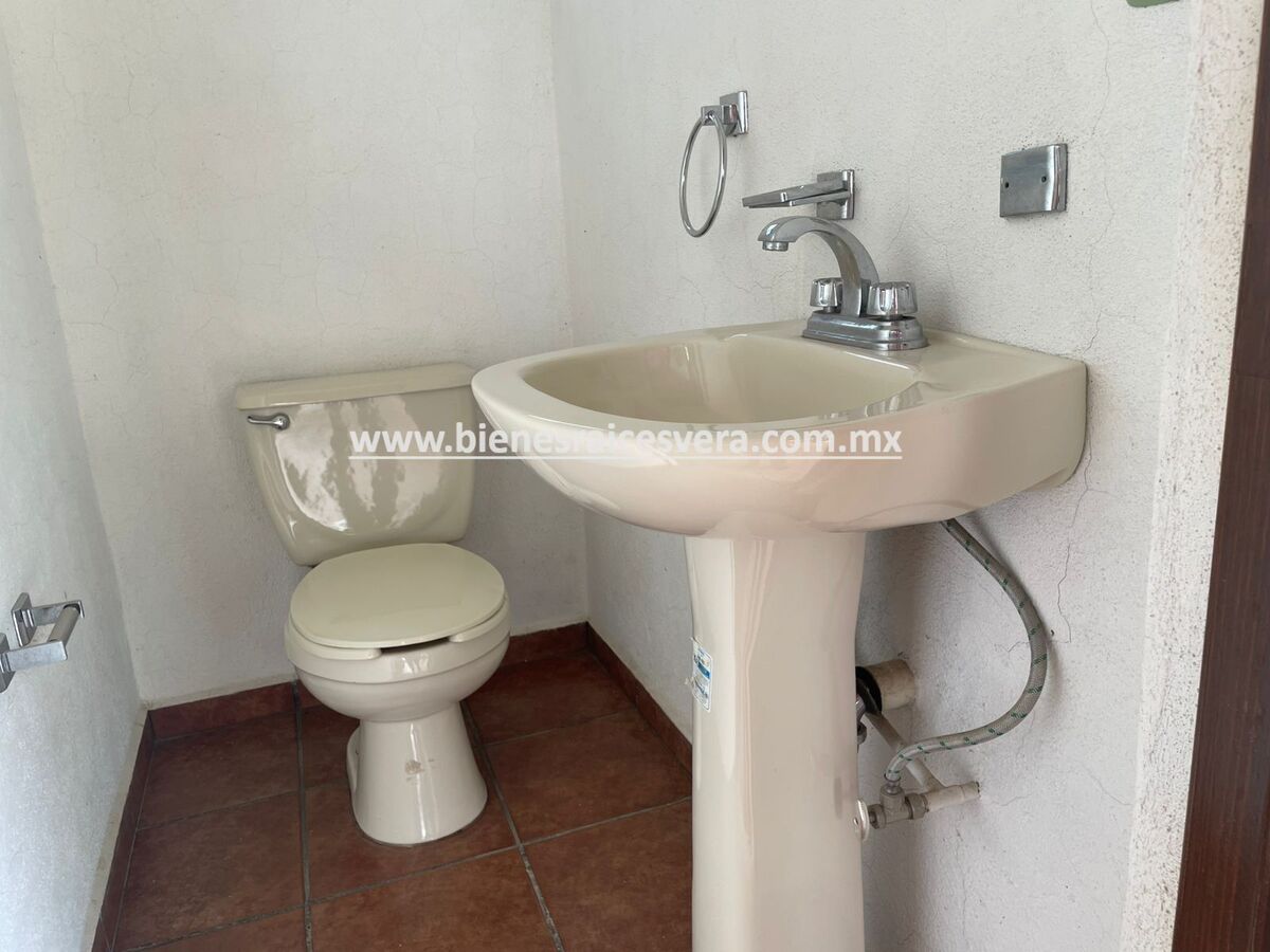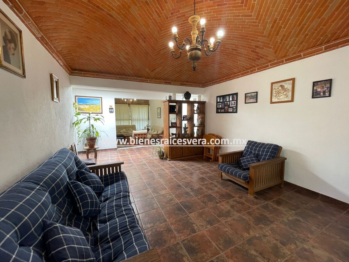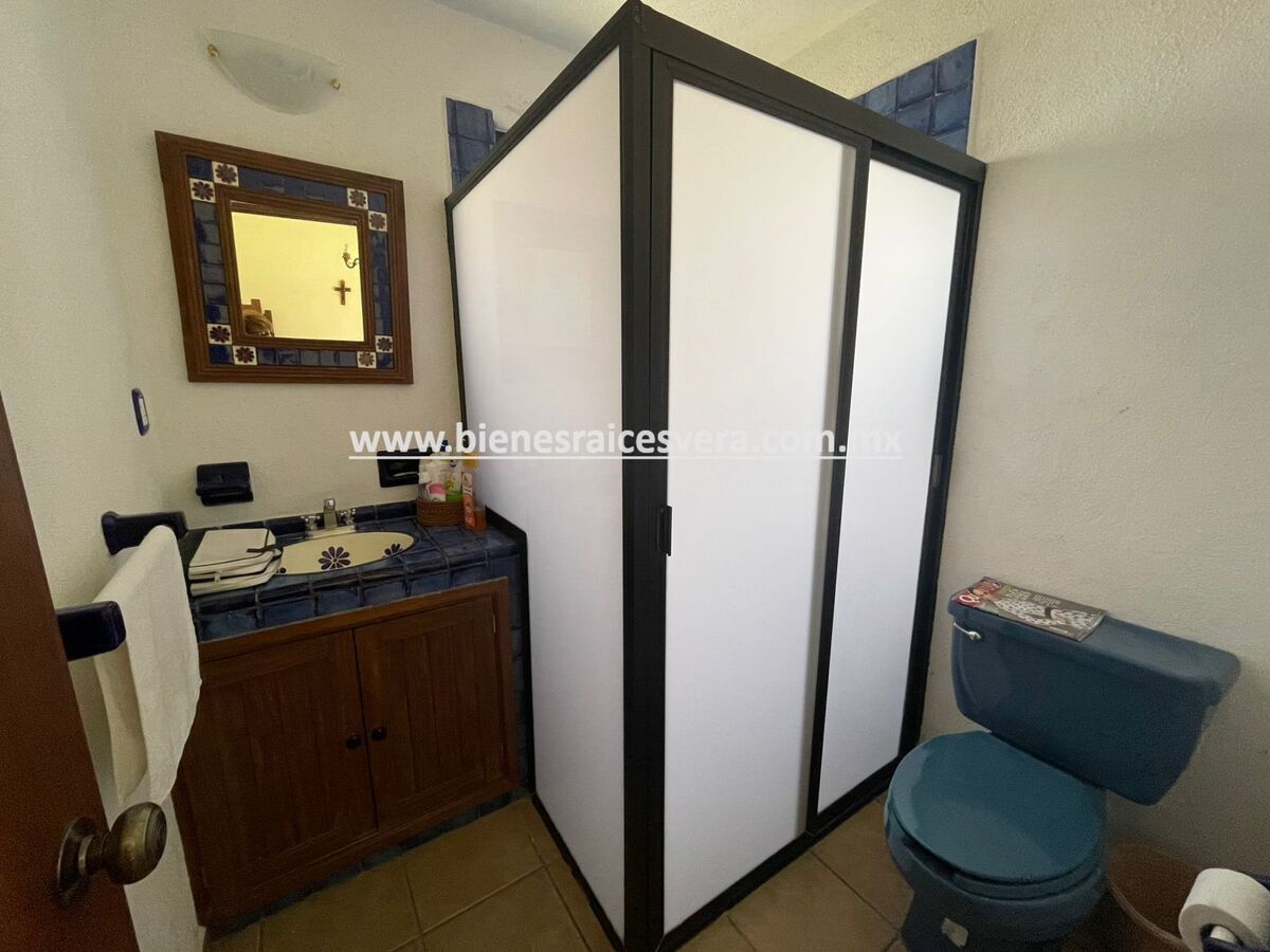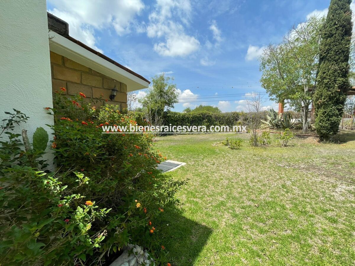 La casa principal cuenta con tres recamaras con baño cada una y closets. sala con chimenea, comedor, cocina equipada, medio baño de visitas, sala de t.v , cuarto de lavado y terraza, frente a ella una hermosa fuente de piedra que da una sensación de tranquilidad con la caída de agua.