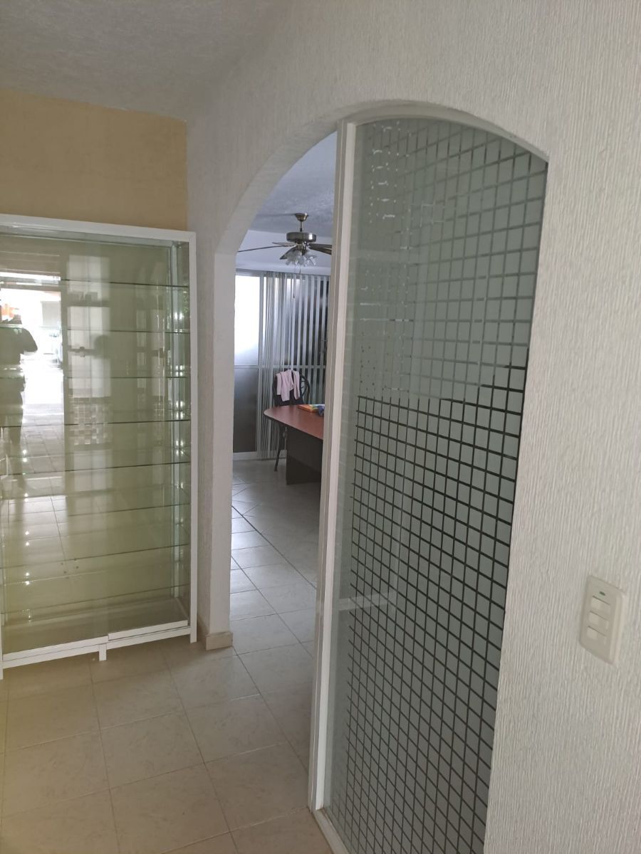 Ground floor, half bathroom, office (can be removed to leave ample space), living-dining room, the patio extension is covered, integral kitchen, the house has air conditioning installed to perfectly acclimate the house, fans, parking for two cars, the first level has 3 expanded bedrooms, each with a closet, the master bedroom has a full bathroom, another full bathroom shared with the other bedrooms, they have bathtubs, which can be removed and only have a shower, protections on the stairs, and on the third level there is an apartment that also has air conditioning, integral kitchen, a breakfast nook, and a spacious room with a closet.Planta baja ,medio baño, oficina (se puede quitar y dejar espacio amplio), sala comedor, extensión del patio se encuentra techado,cocina integral,la casa cuenta con aire acondicionado instalado para aclimatar perfectamente la casa, ventiladores,estacionamiento para dos autos,primer nivel cuenta con 3 recamaras ampliadas, cada una cuenta cuenta con closet, la recamara principal cuenta con baño completo, otro baño completo que se comparte con las otras recamaras, tienen bañeras ,que se pueden quitar y quedar solo en regadera,protecciones en escalera, y en tercer nivel esta un departamento que cuenta también con clima,cocina integral, un desayunador, amplio cuarto con closet.