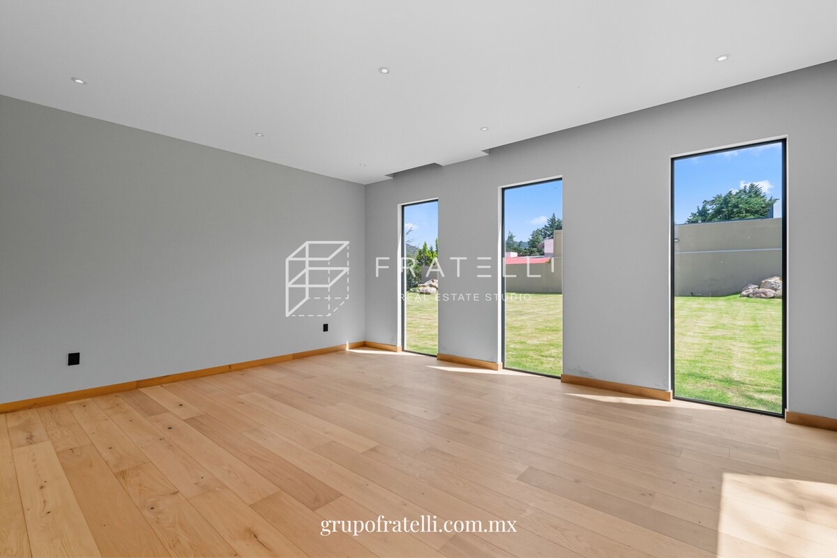 Exclusive residence in one of the most prestigious and secure developments in the State of Mexico. Contemporary architectural design, spacious areas, and a natural environment that provides privacy, elegance, and quality of life.