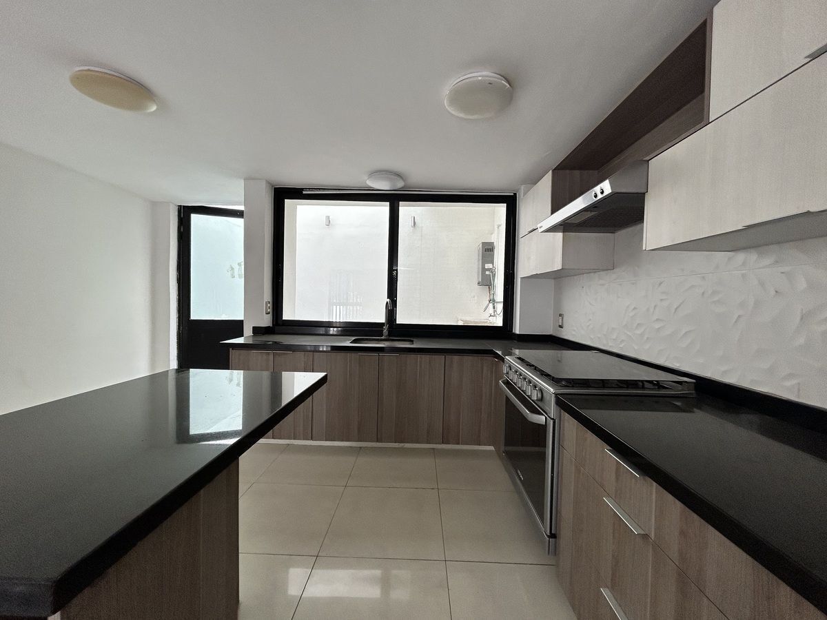 Cocina integral con barra de granito, estufa de 6 quemadores, campana, splash de ceramica