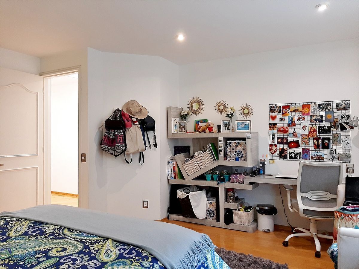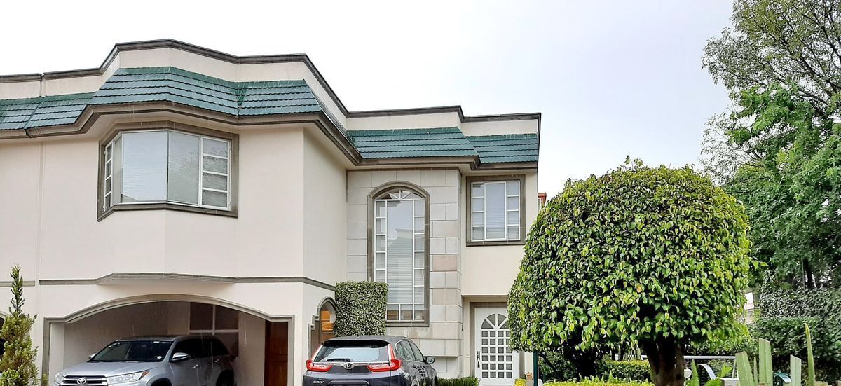 Spacious and bright house for sale just steps from the Paseo Interlomas shopping center, within a private community with double security filter. 3 spacious bedrooms with bathroom and dressing room, TV room with a small work area, living room with fireplace, dining room, large equipped open kitchen, breakfast area, terrace, laundry area, half bathroom for guests, service room with full bathroom, 2 linen closets, storage room, cistern, 3 parking spaces. The house has an excellent layout which allows for maximum use of space. Common garden with playground and visitor parking. COME AND SEE IT, YOU'LL LOVE IT.