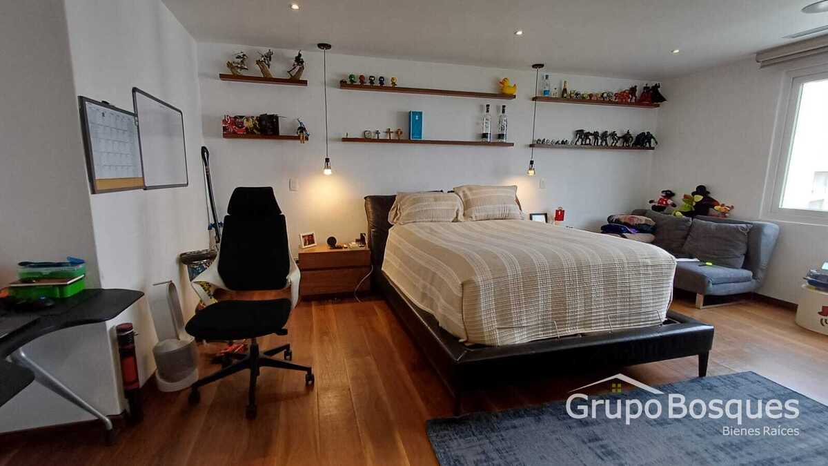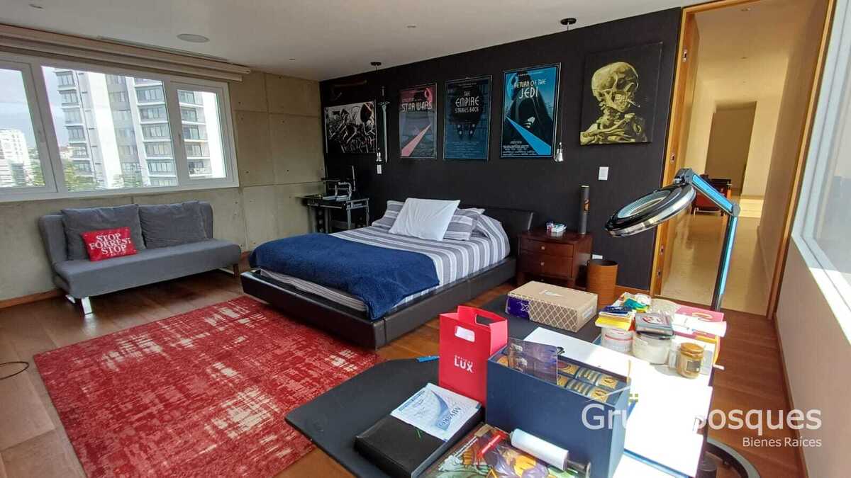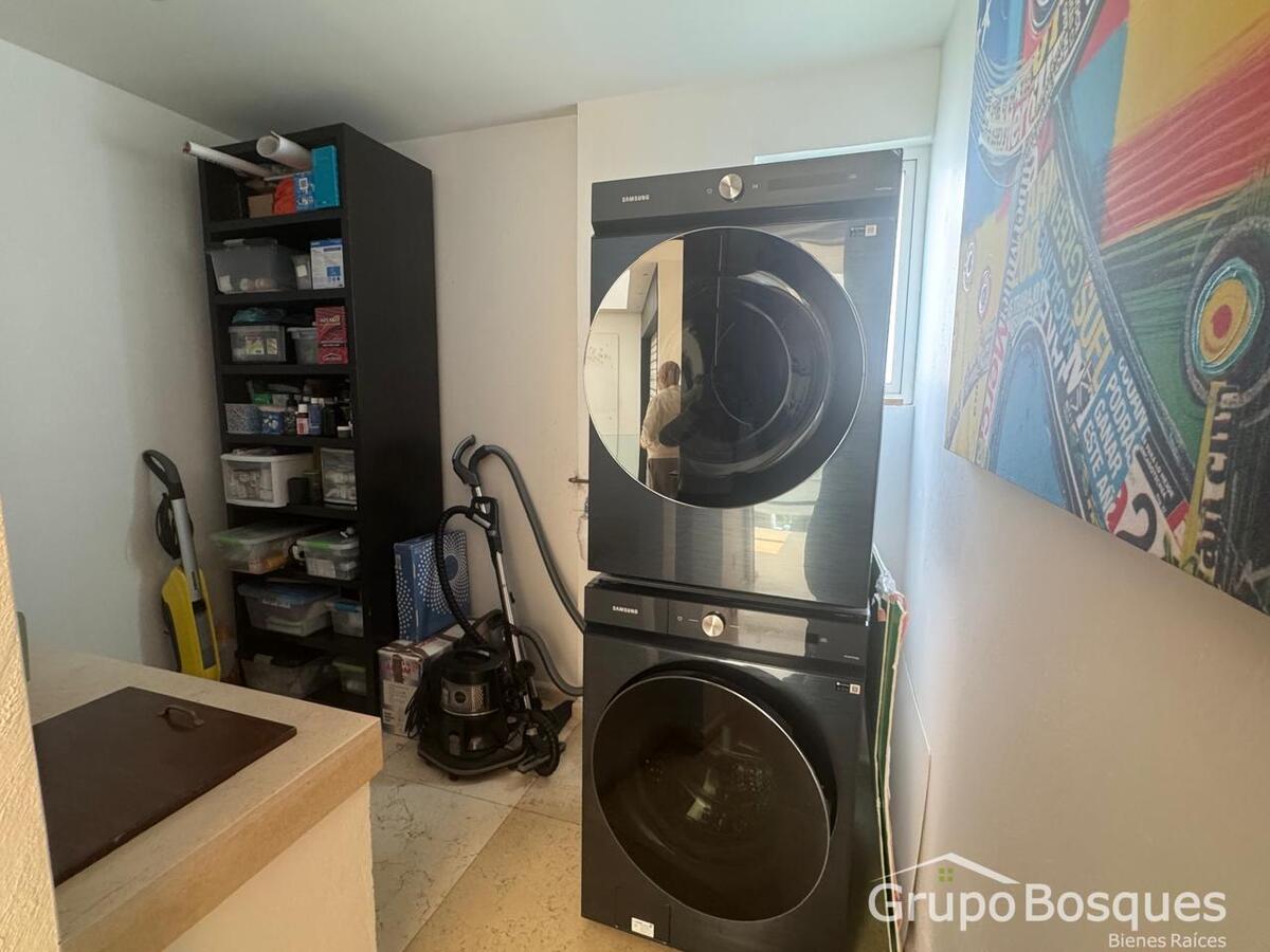 En el 2o piso encontramos una sala de tv y 4 recámaras muy amplias con baño y vestidor. La recámara principal tiene terraza con vista al jardín, salita, baño y 2 vestidores muy espaciosos. Para mayor comodidad cuenta con una cocineta y espacio para lavado cerca de las habitaciones.