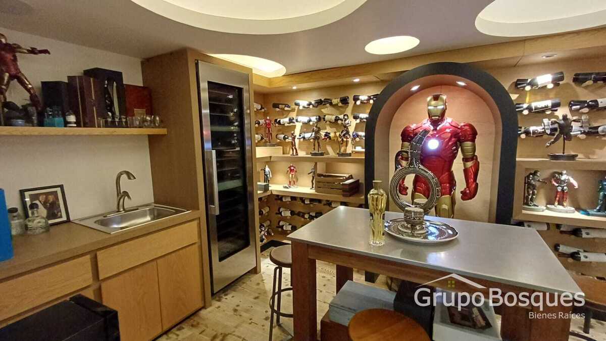 Empezando por la parte de servicios, tiene un estacionamiento muy amplio de donde se tiene acceso a las diferentes bodegas, cuarto de máquinas, área de vigilancia, y cava implementada con todo detalle. En el patio trasero hay un huerto y espacio para juegos como basket o futbol. Gimnasio con baño y vapor incluido, con acabados de lujo. Cuenta con toda una área de servicio, con 2 cuartos para el personal, baños, salita y cocineta.