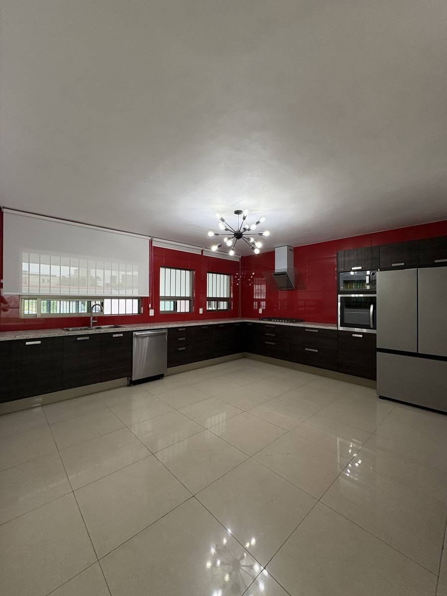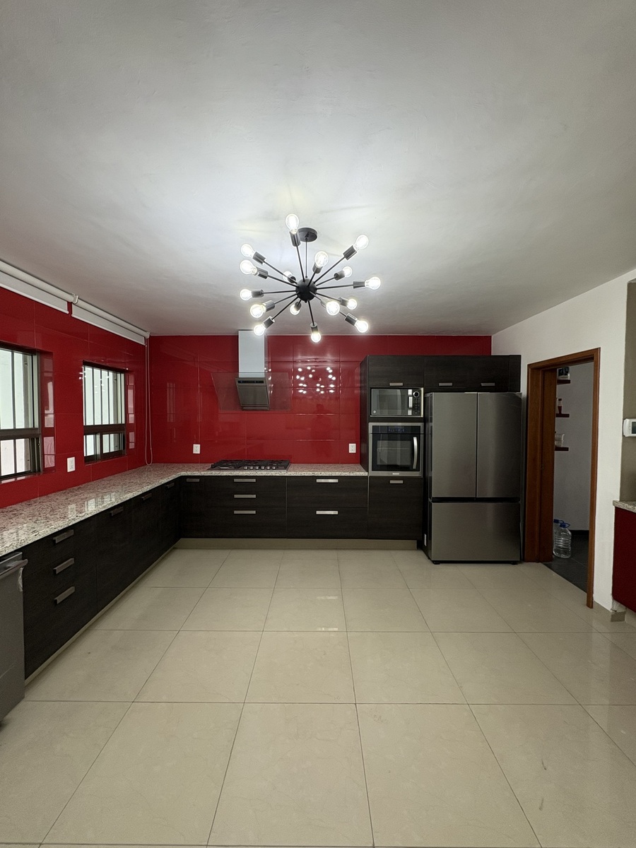 Cocina equipada con refrigerador , parrilla de gas , tarja , hornos y lavaplatos.