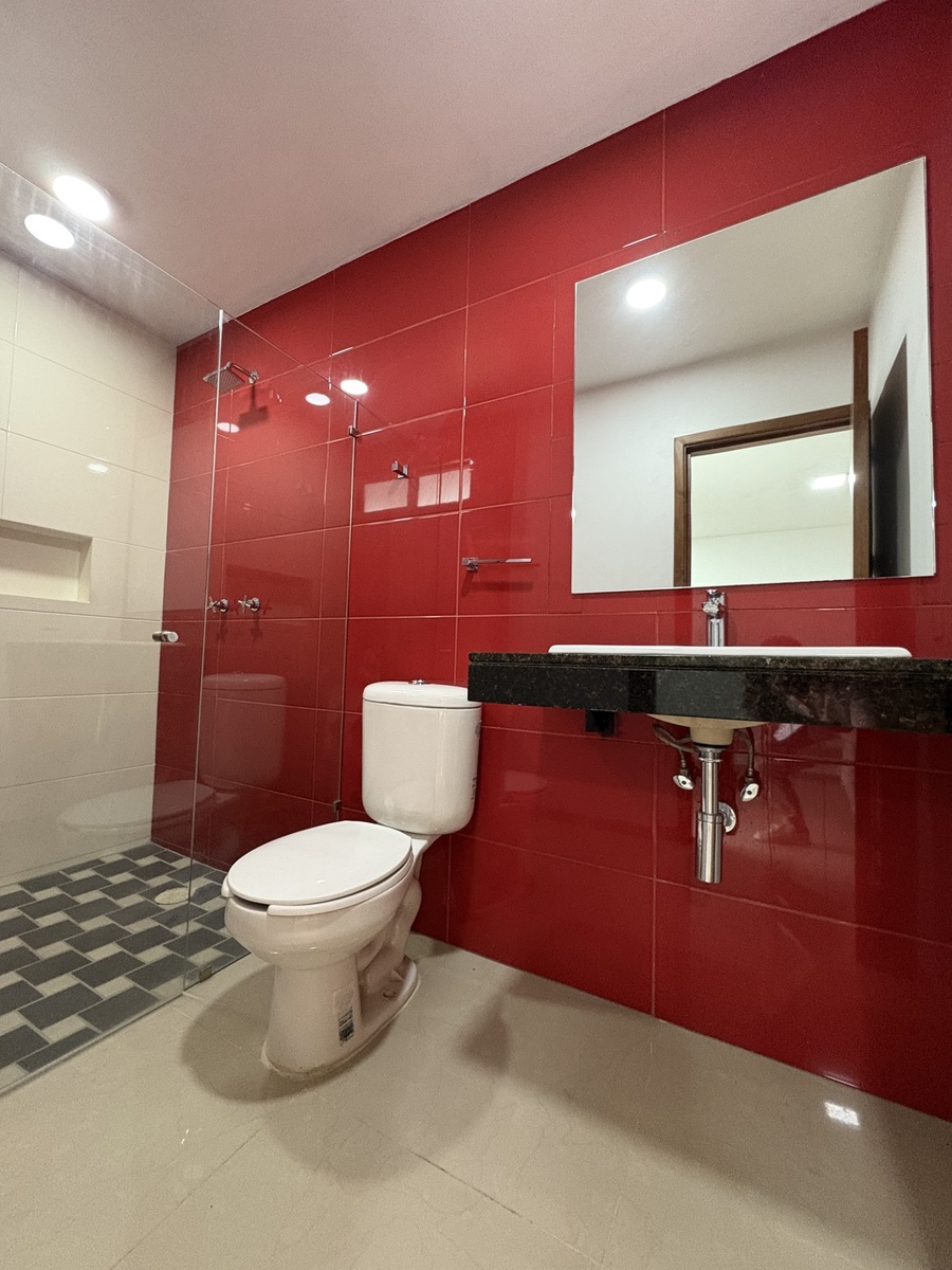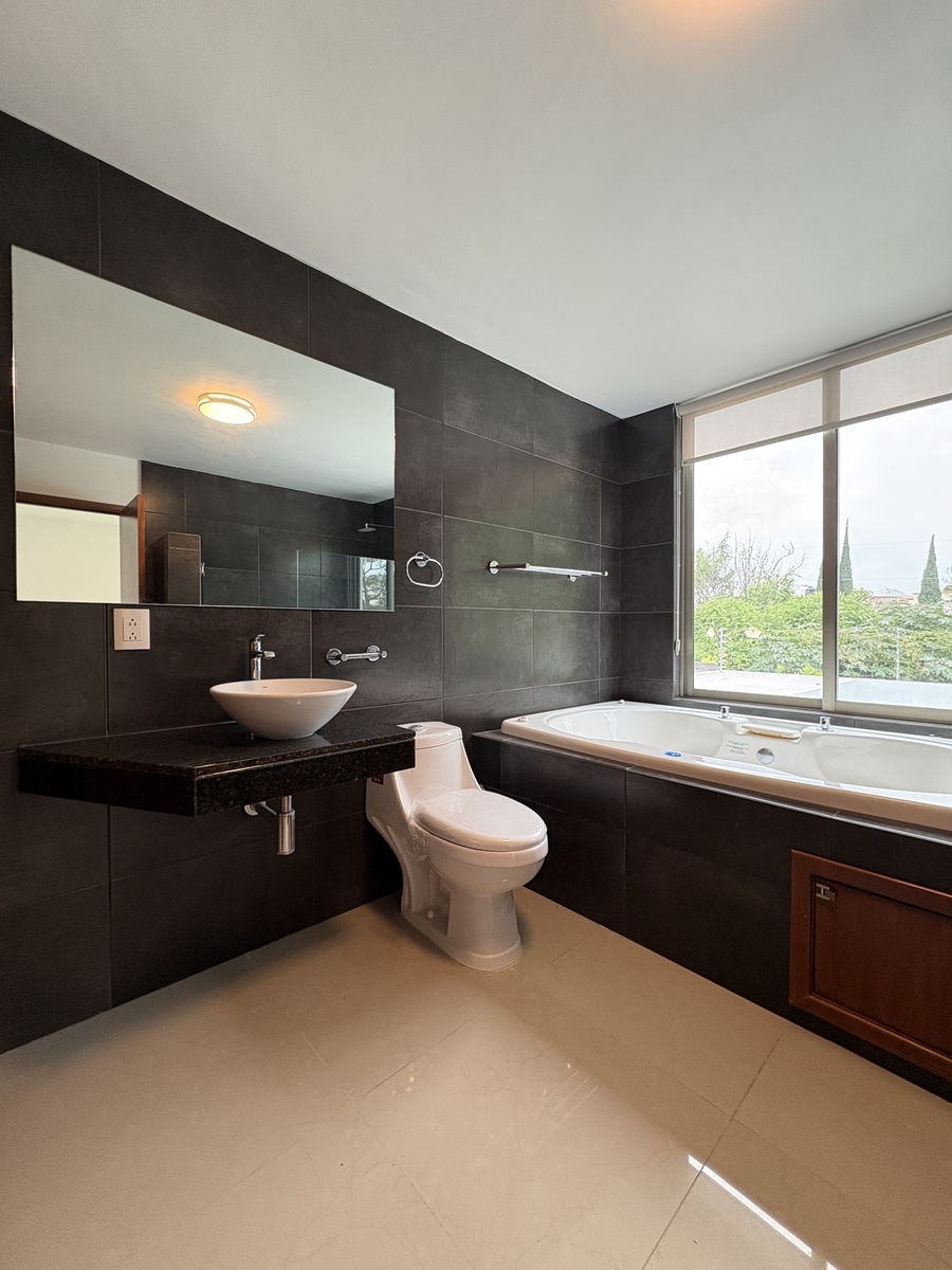 4 recámaras , con baño completo , aire acondicionado , closets , tocador , una con vestidor y tina .