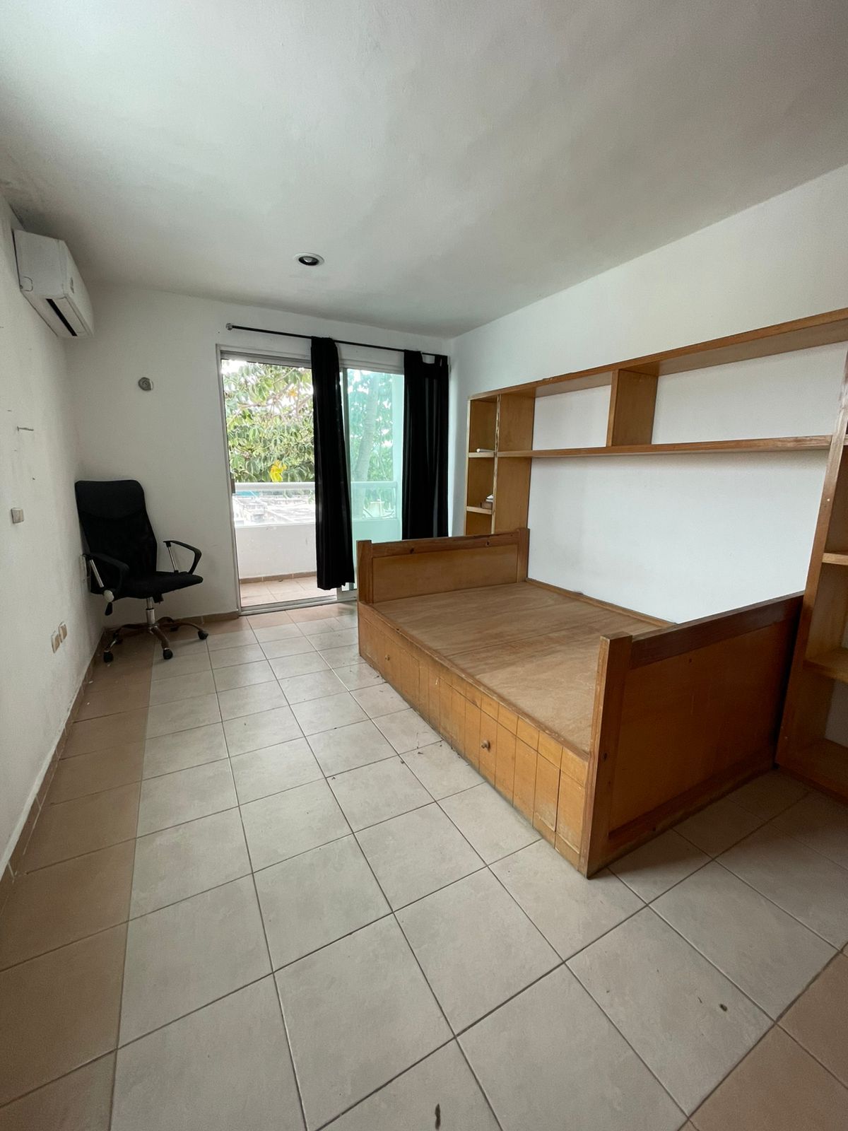 Recámara con balcón pequeño y clóset
