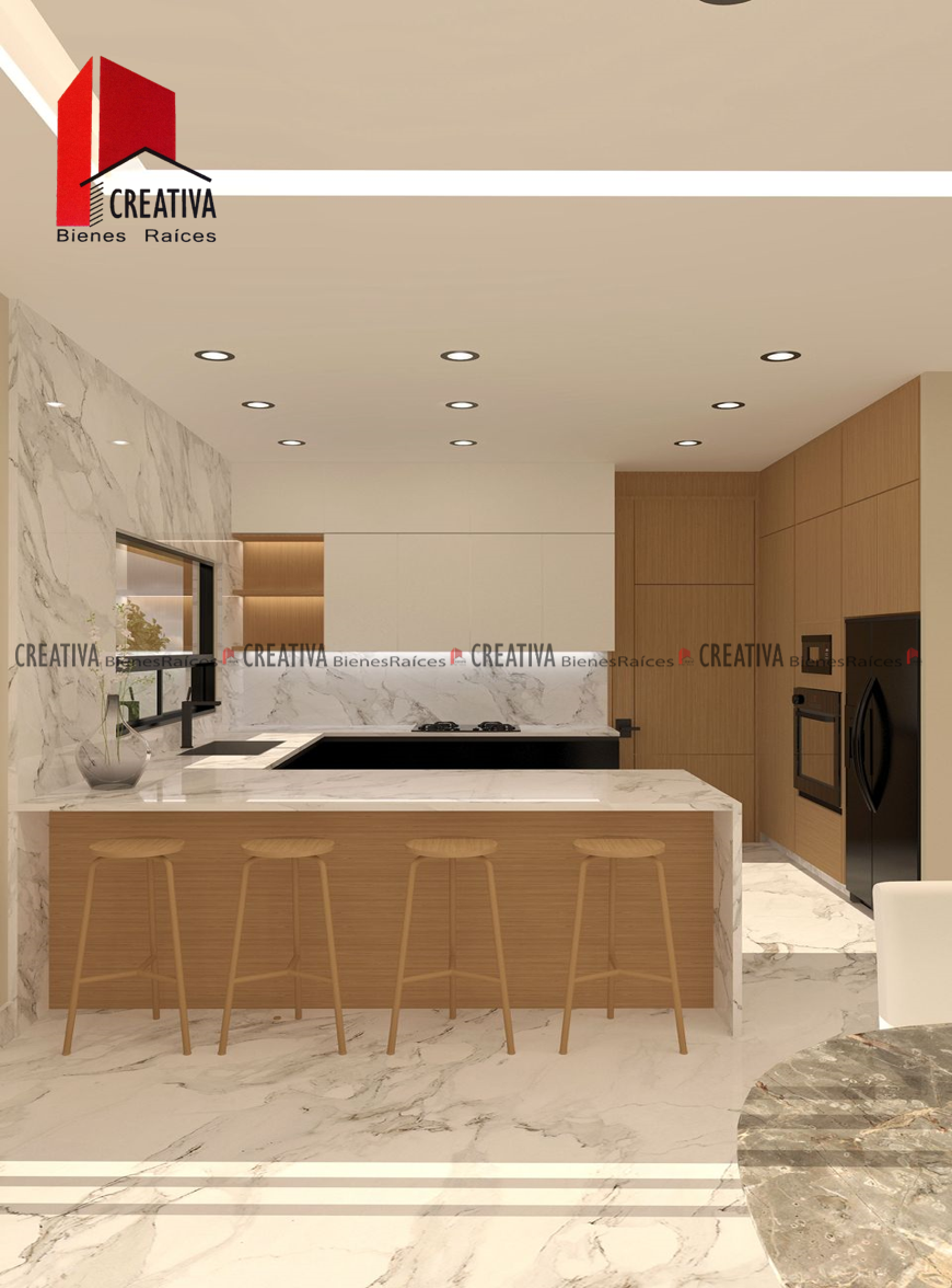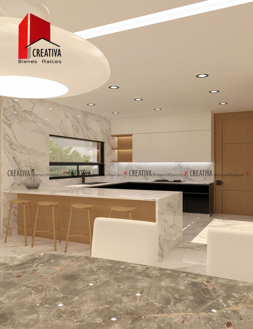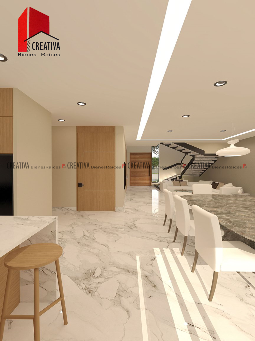 Incluye cocina con cubierta de granito, carpintería completa en closets y cocina, pisos Interceramic de 60x60 cm, plafones en toda la casa, block con aislamiento térmico, impermeabilización con papel mineralizado, 2 unidades de refrigeración tipo paquete de 5 toneladas