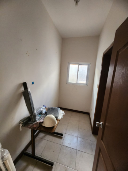 Living room, dining room, kitchen with kitchenette and stove, service room with full bathroom that could serve as a bedroom on the ground floor, laundry room, patio with grill, 2 service hallways, and covered garage for 2 cars.