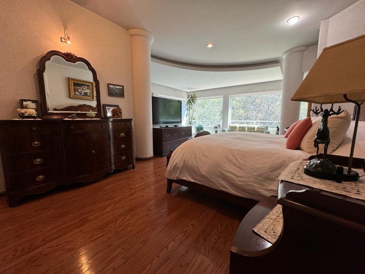 Recámara principal muy amplia, con baño completo, vestidor, jacuzzi, vapor y terraza con vista al bosque
