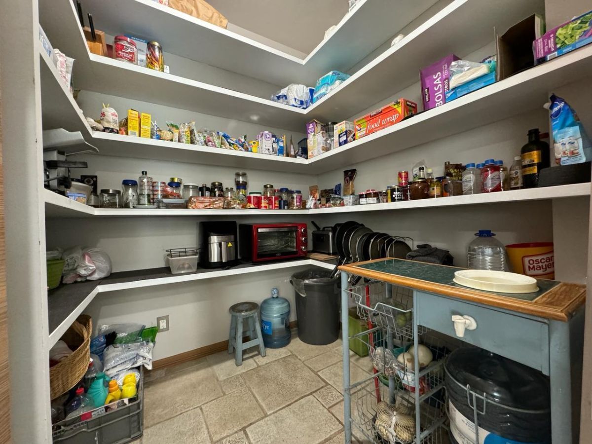 Garage techado para 4 autos, cuarto de servicio independiente y tres bodegas