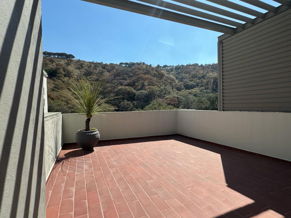 Exclusiva casa en La Estadía, rodeada de bosque y naturaleza. Cuenta con amplios espacios, vista panorámica, jardín con asador, gimnasio y cocina nueva. Fraccionamiento con estricta vigilancia y excelentes amenidades.