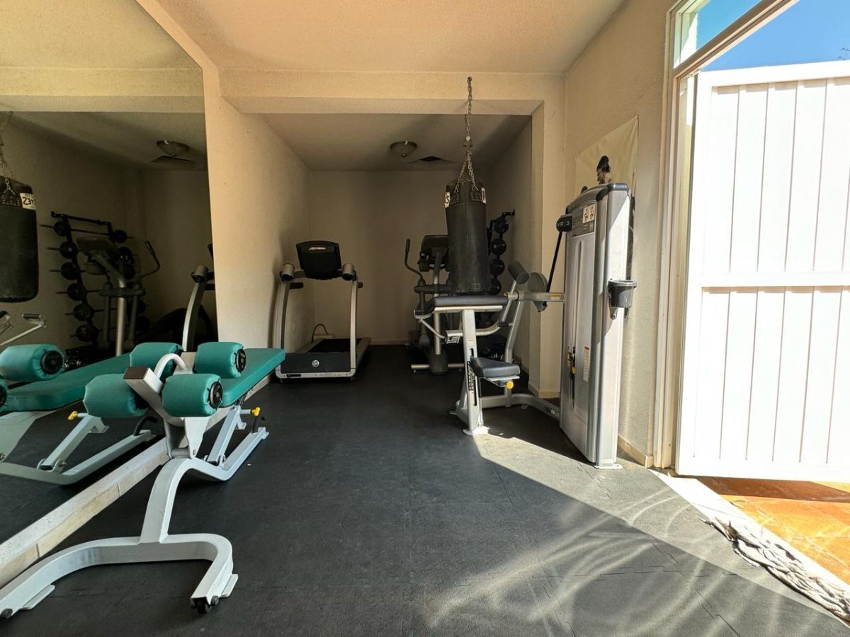 Salón de usos múltiples y gimnasio con medio baño