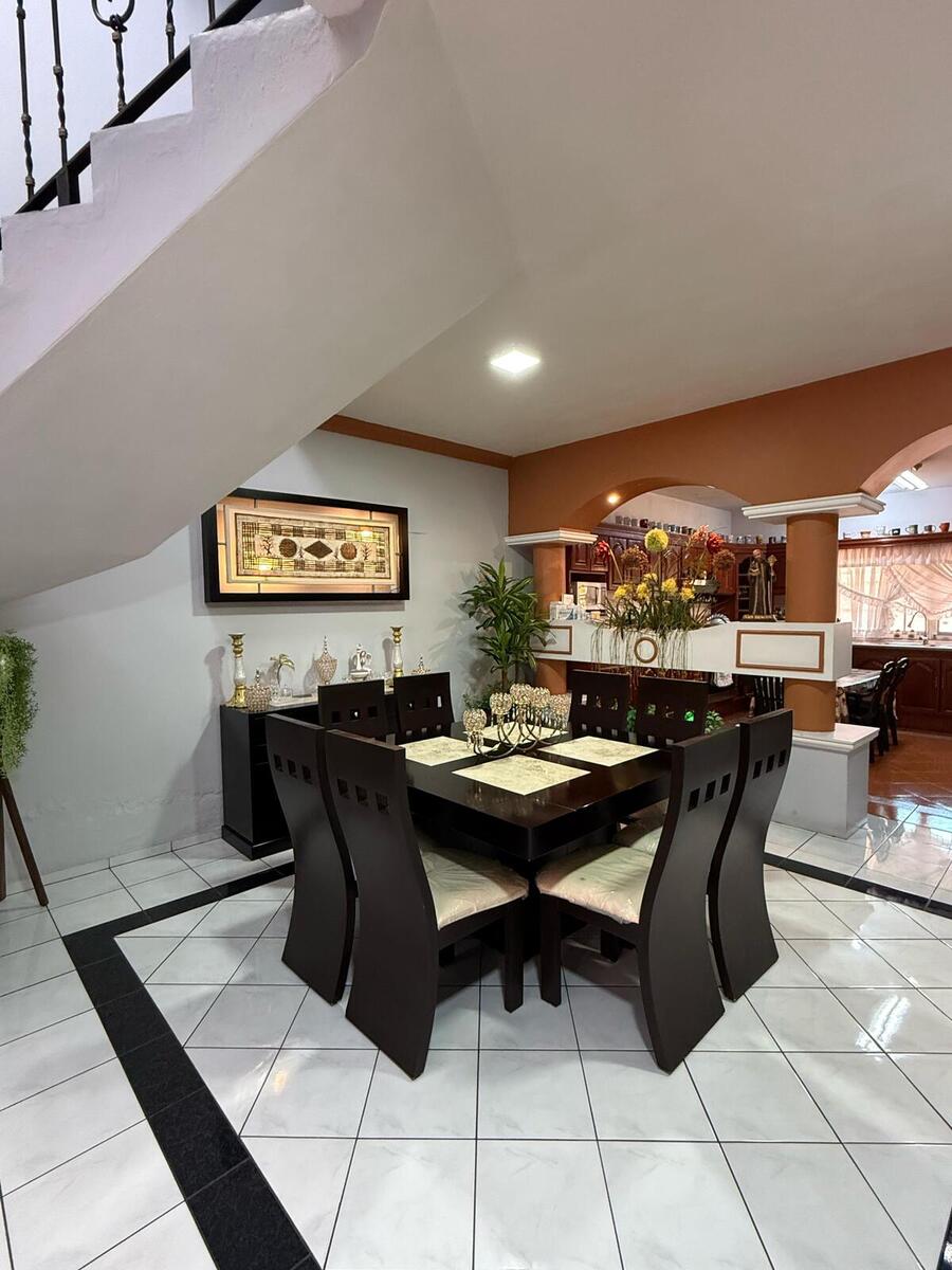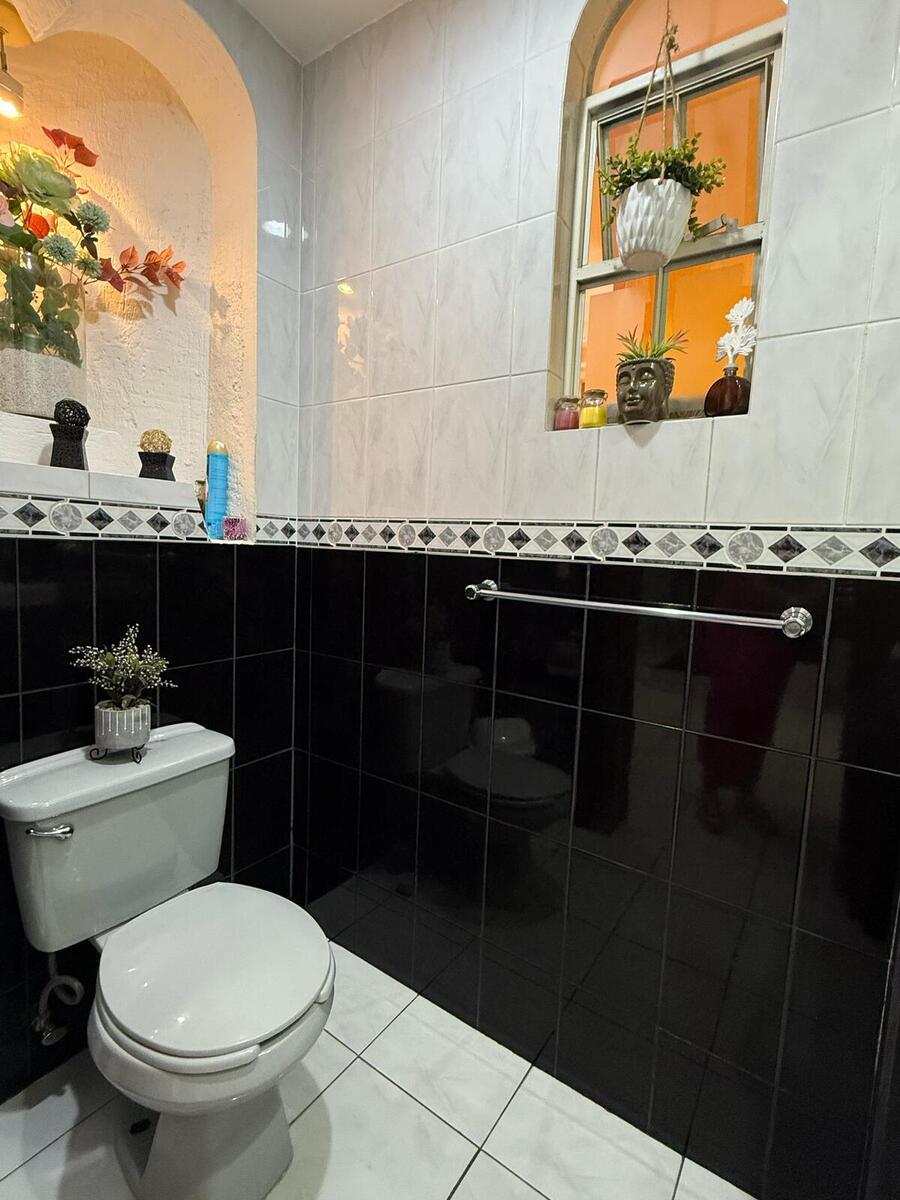 The terrace can be accessed from the living room or through the side entrance of the property that connects with the semi-covered garage. The covered area consists of a gabled roof, a kitchenette with a sink, and space for a grill, a fully functional water wall covered with black volcanic stone. An additional half bathroom for use during gatherings.